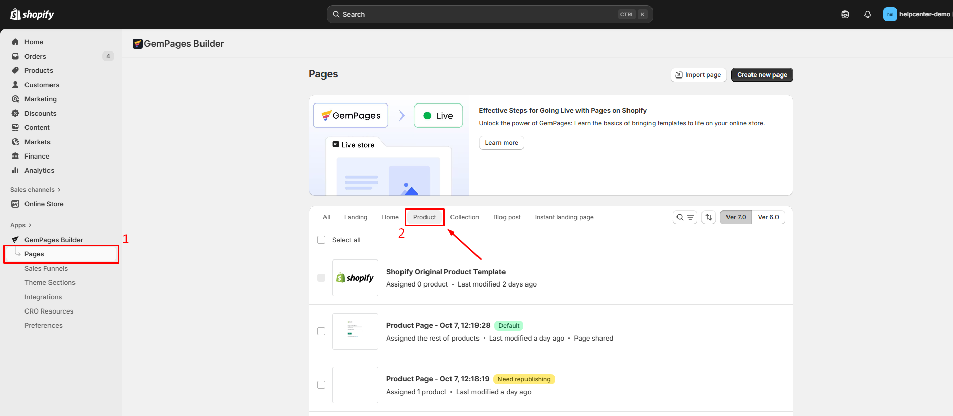- After installing the wishlist app, go to the GemPages Builder app under the App section.