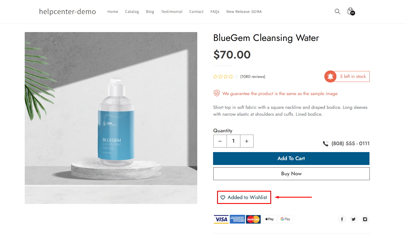Save your changes, and hit Publish to republish your product page with the Add to Wishlist button.