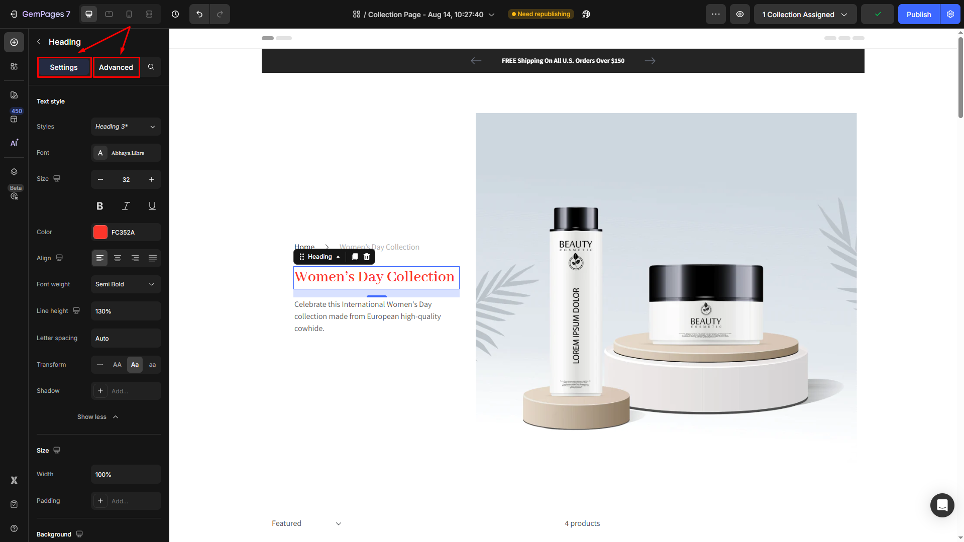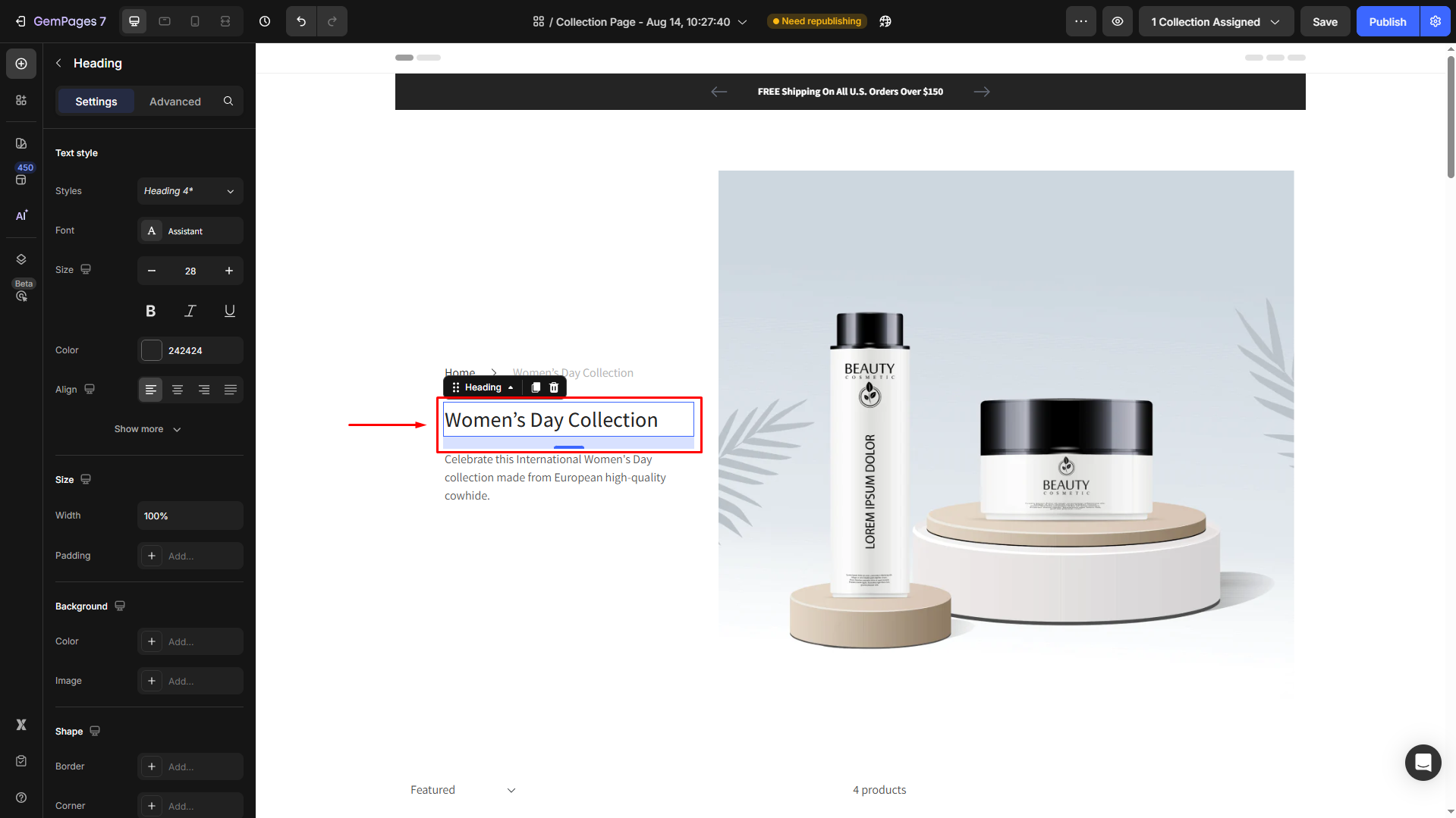 This could be a heading, text block, or any other text area within your GemPages design.