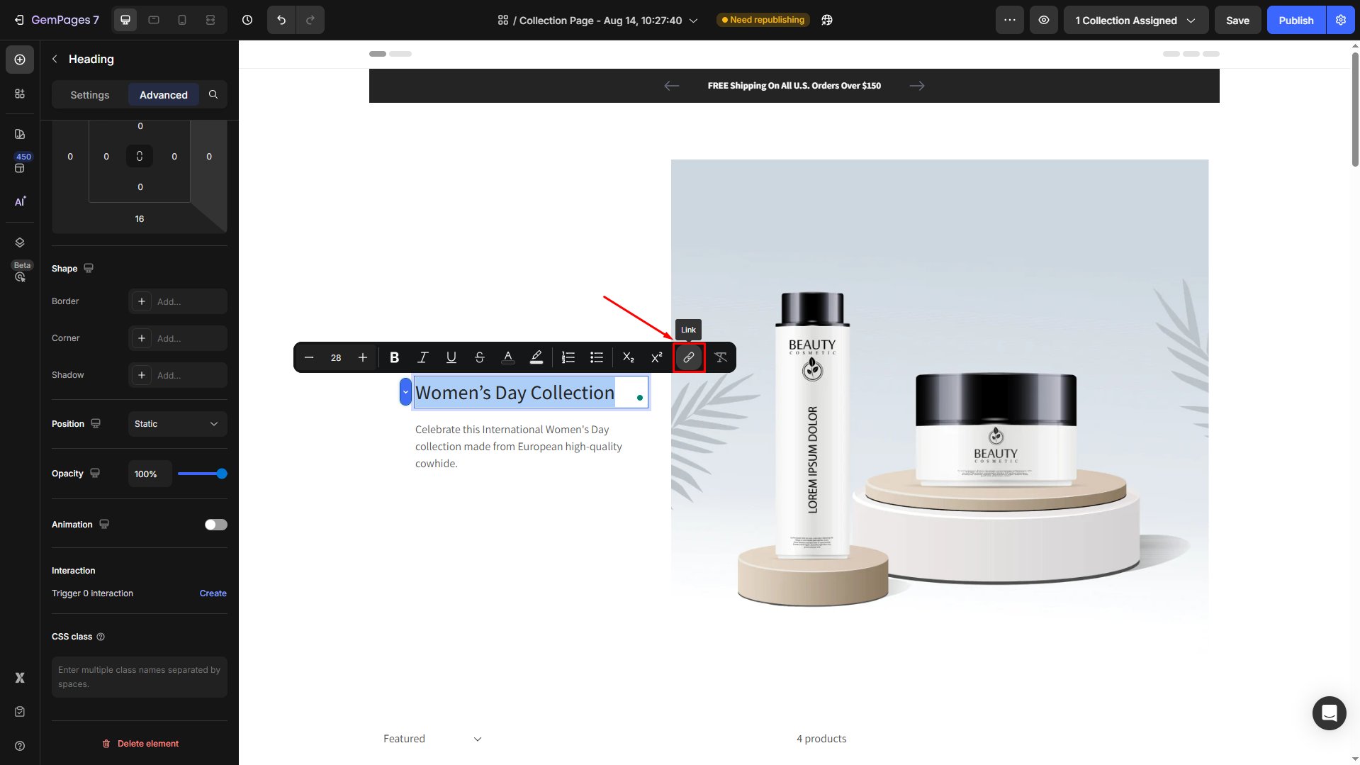 GemPages makes it easy to add links to any text element on your page. Follow these simple steps: