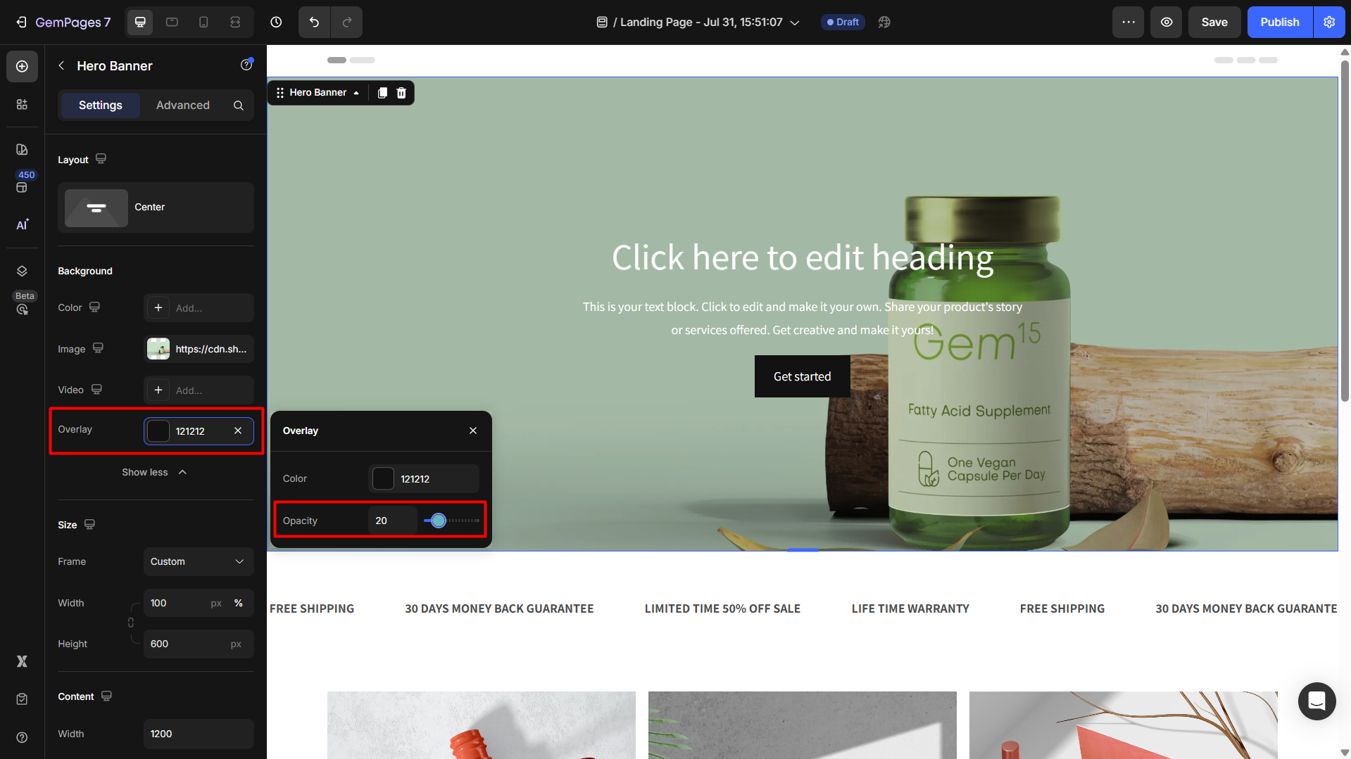 Within GemPages, you can add an overlay for your image to achieve a sleek and professional design that draws attention to key content on your page.