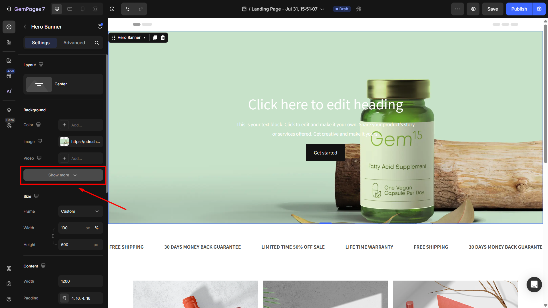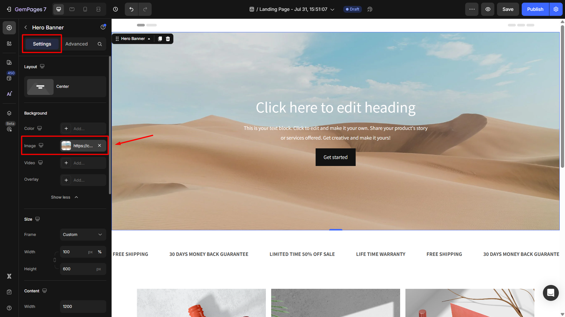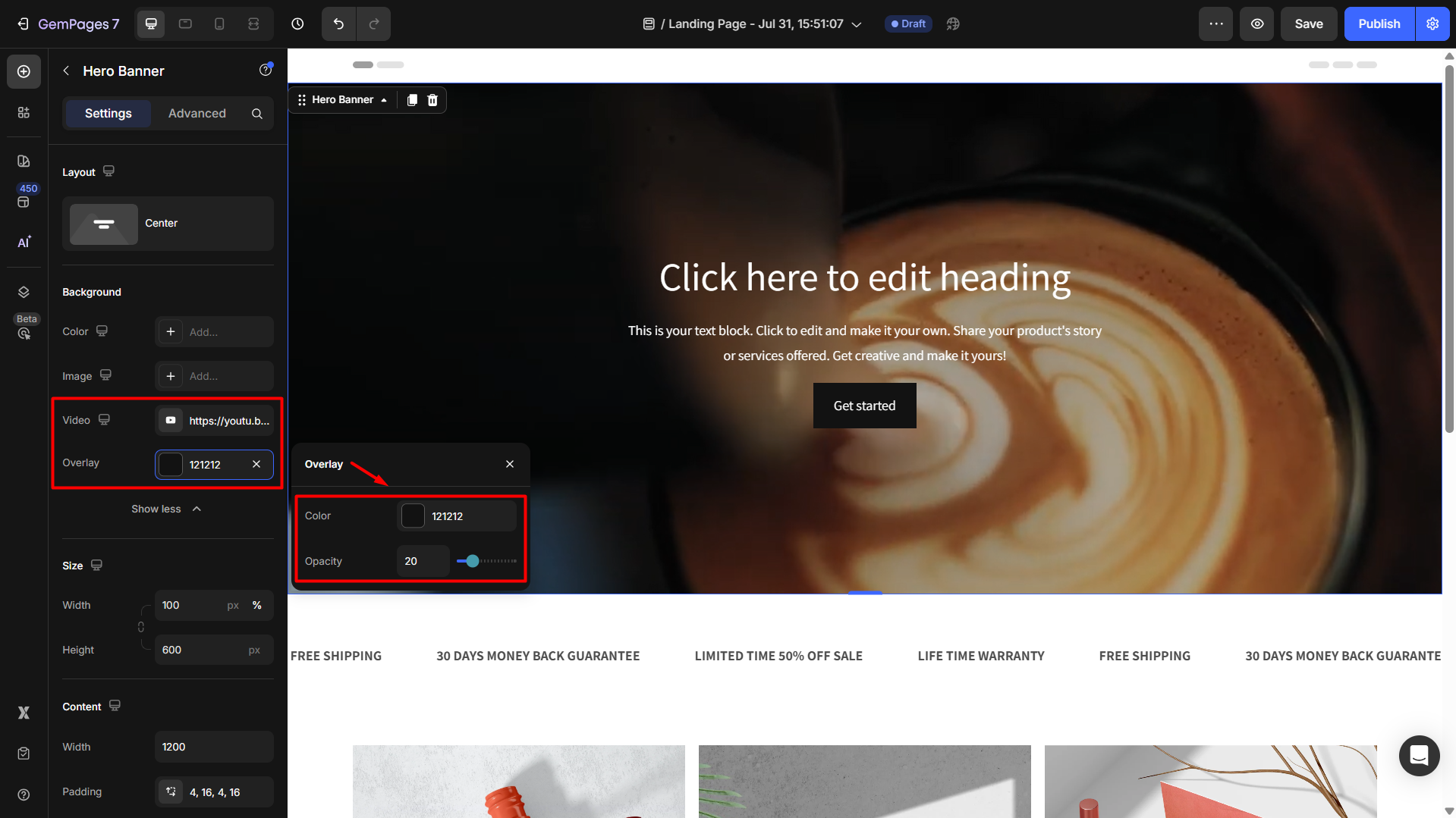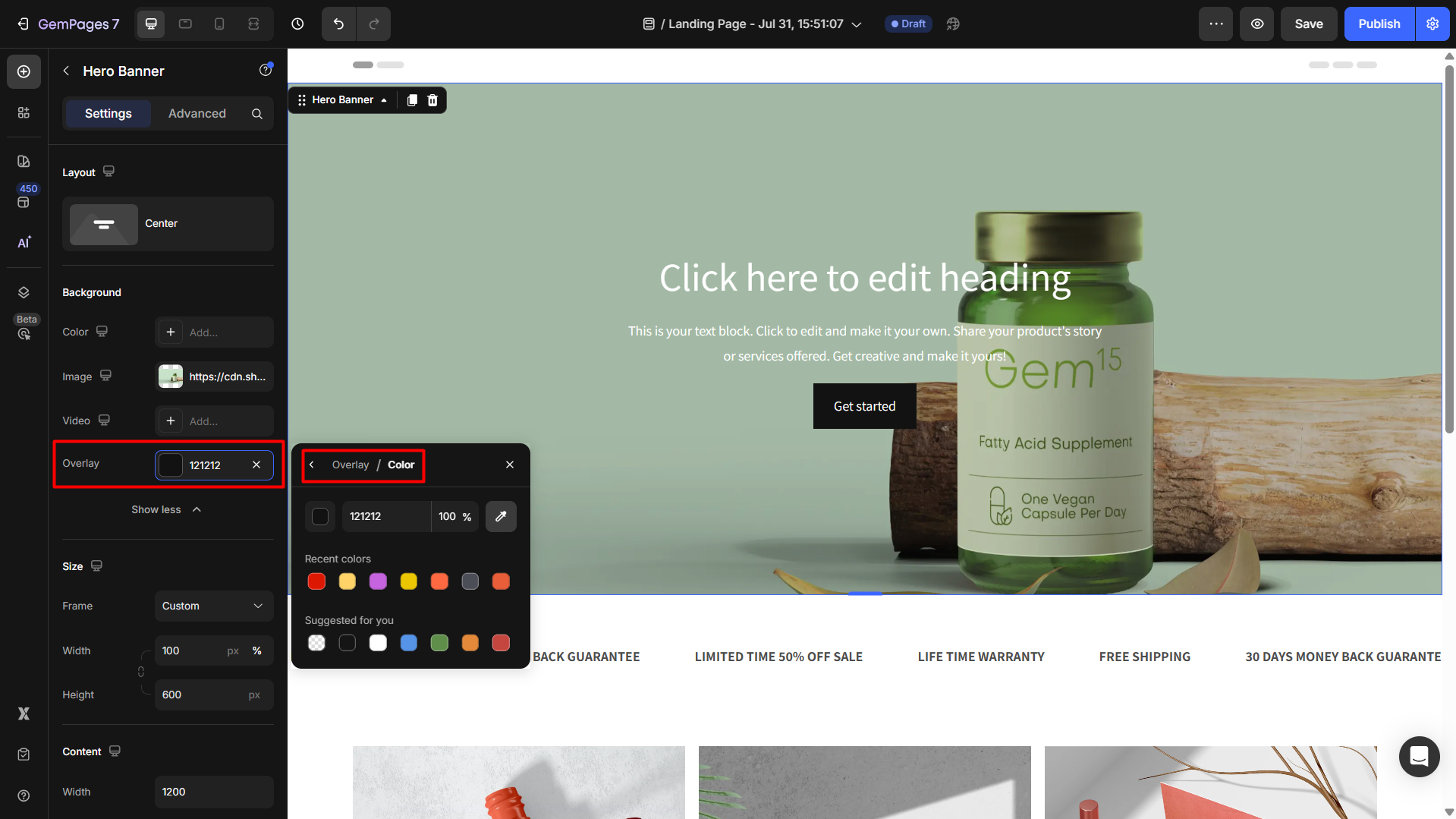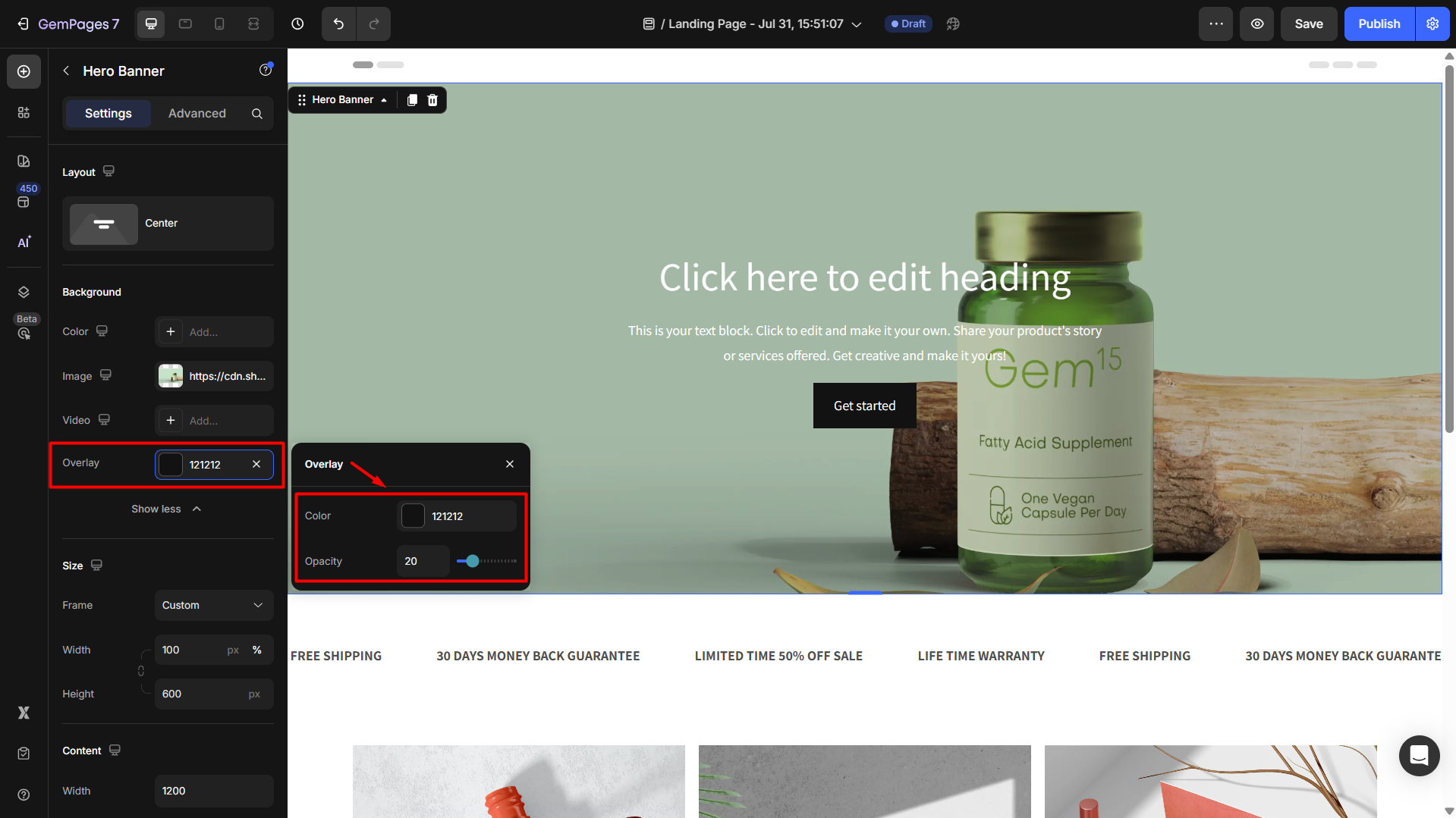 To add an overlay on your image using the Hero Banner element in GemPages, follow these steps: