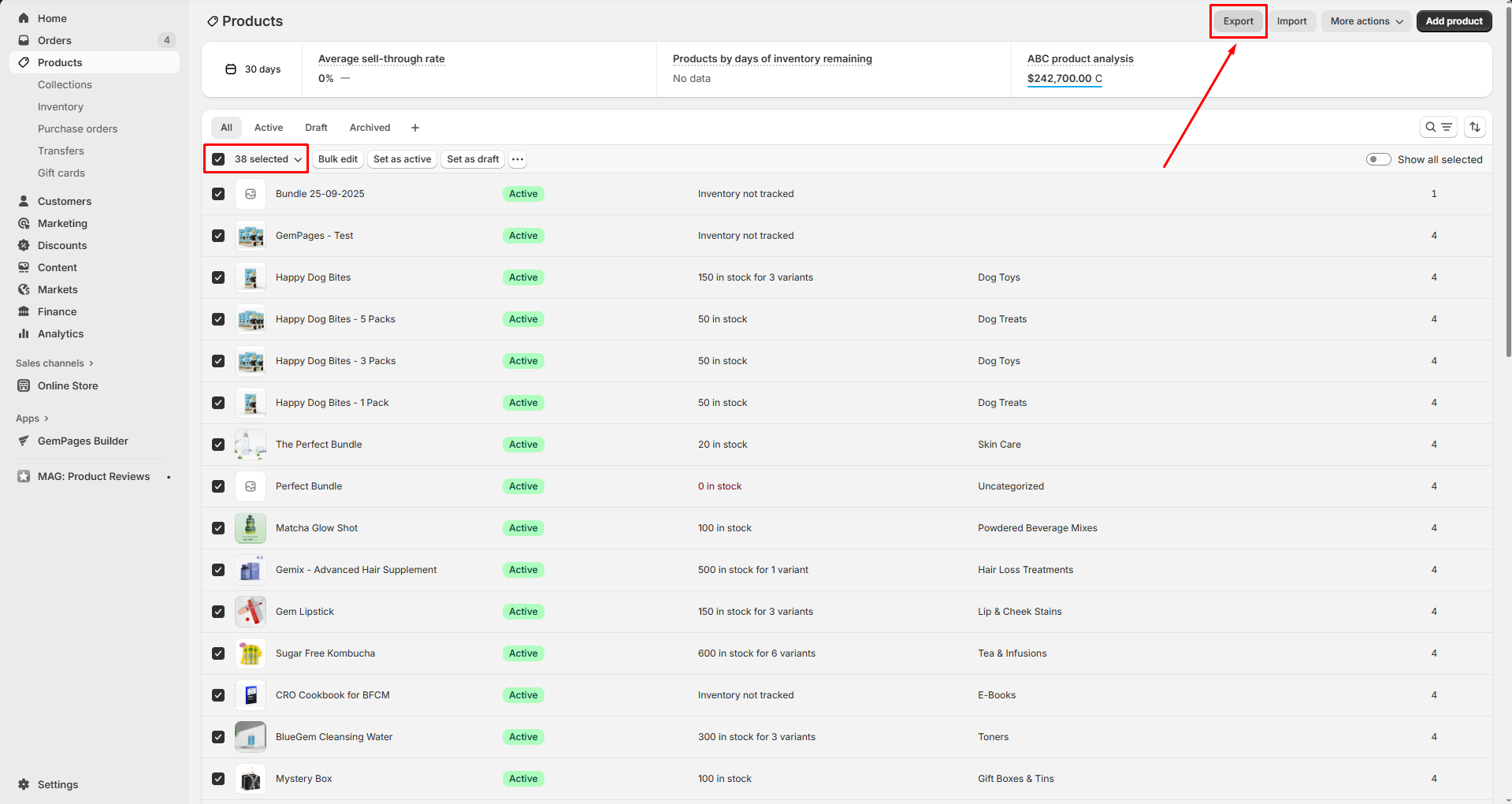 Step 1: Go to the Products tab, select the products you want to add an SKU to, then click Bulk edit.