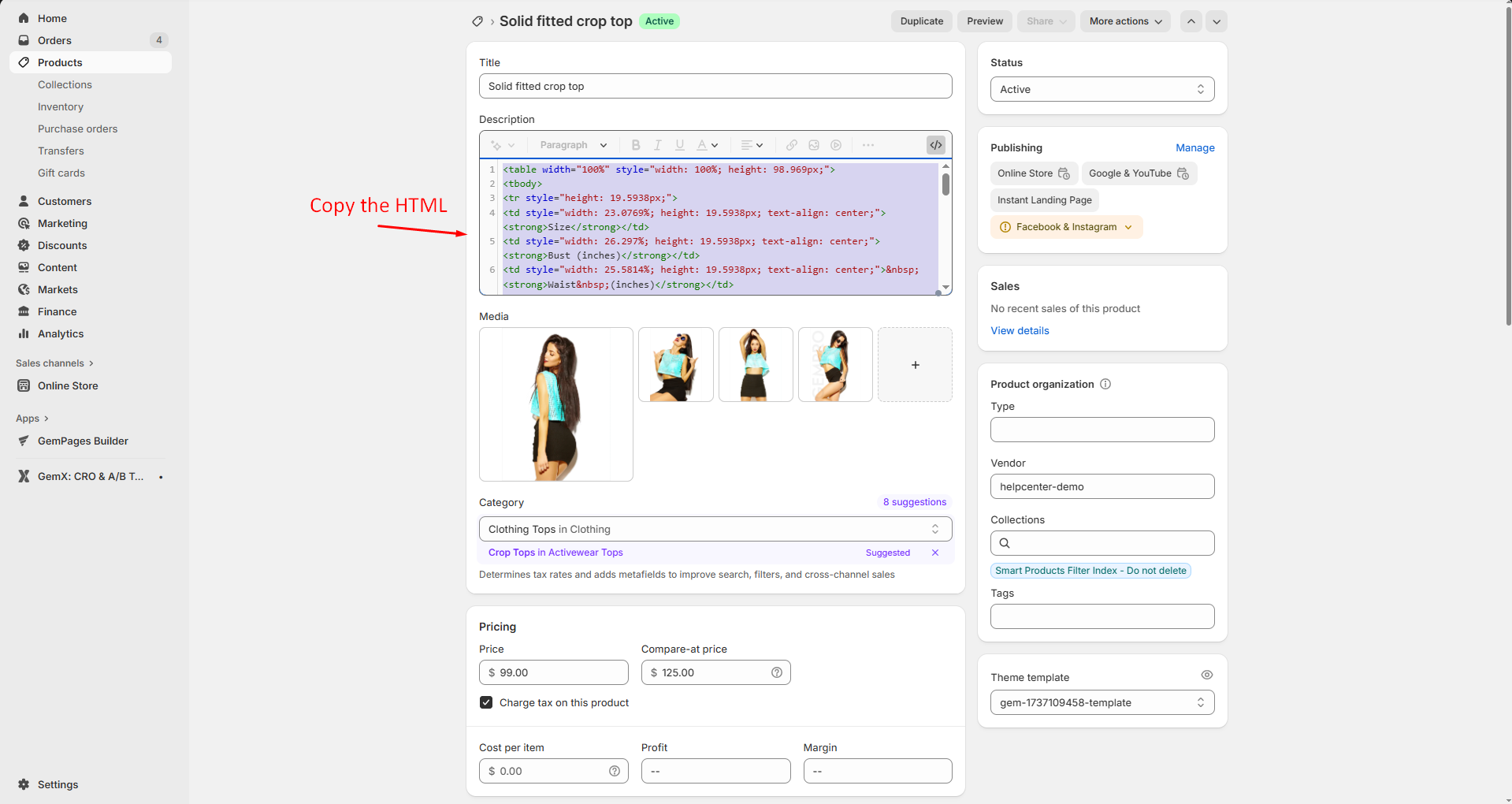 Step 1: Navigate to your Shopify Admin > Products. Select the product you want to add the size chart to.