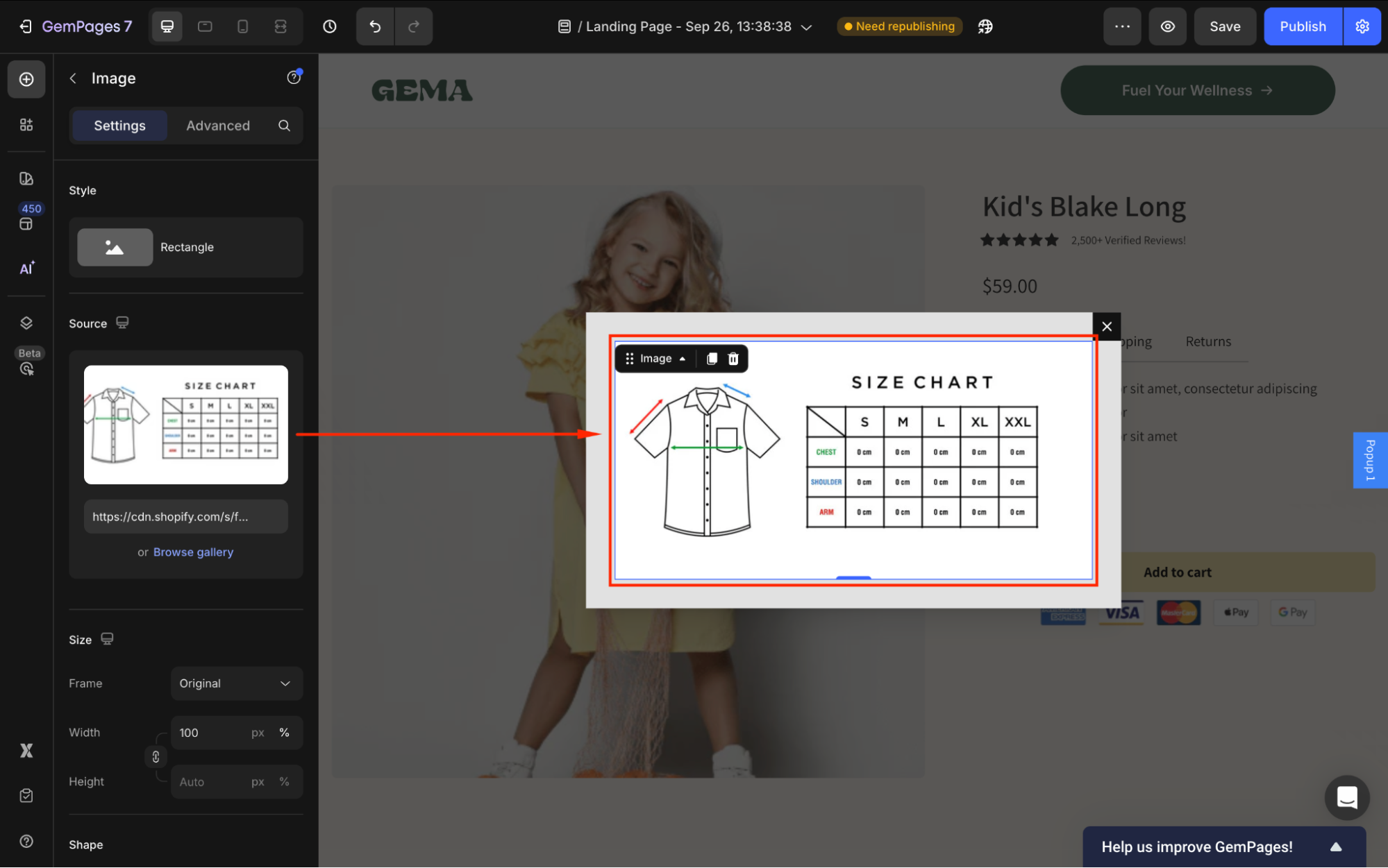 To explore these options, visit GemPages Help Center – Size Chart Integration for a step-by-step guide on using popular size chart apps.