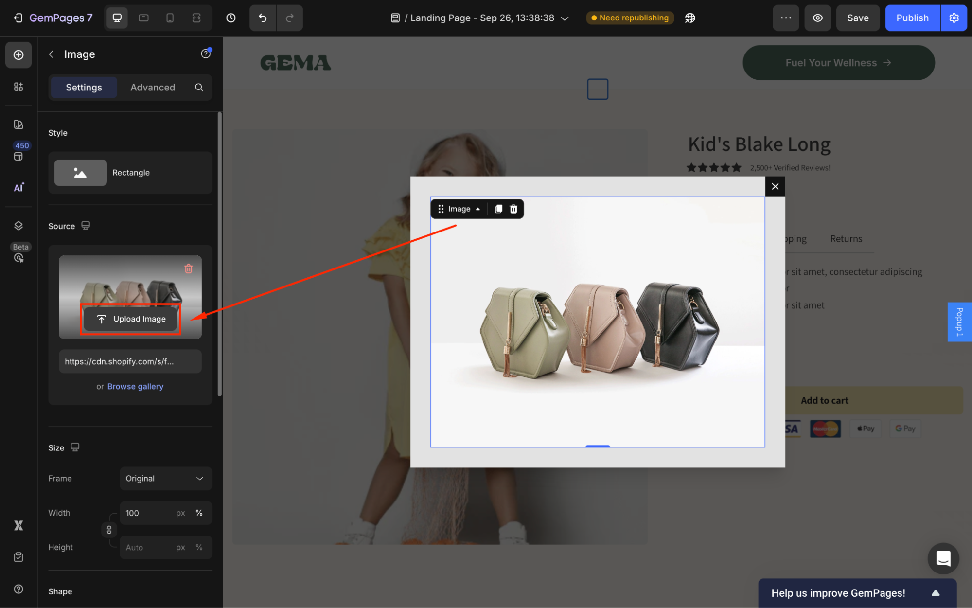 Step 1: Open your product page in the GemPages editor and find the Image element.