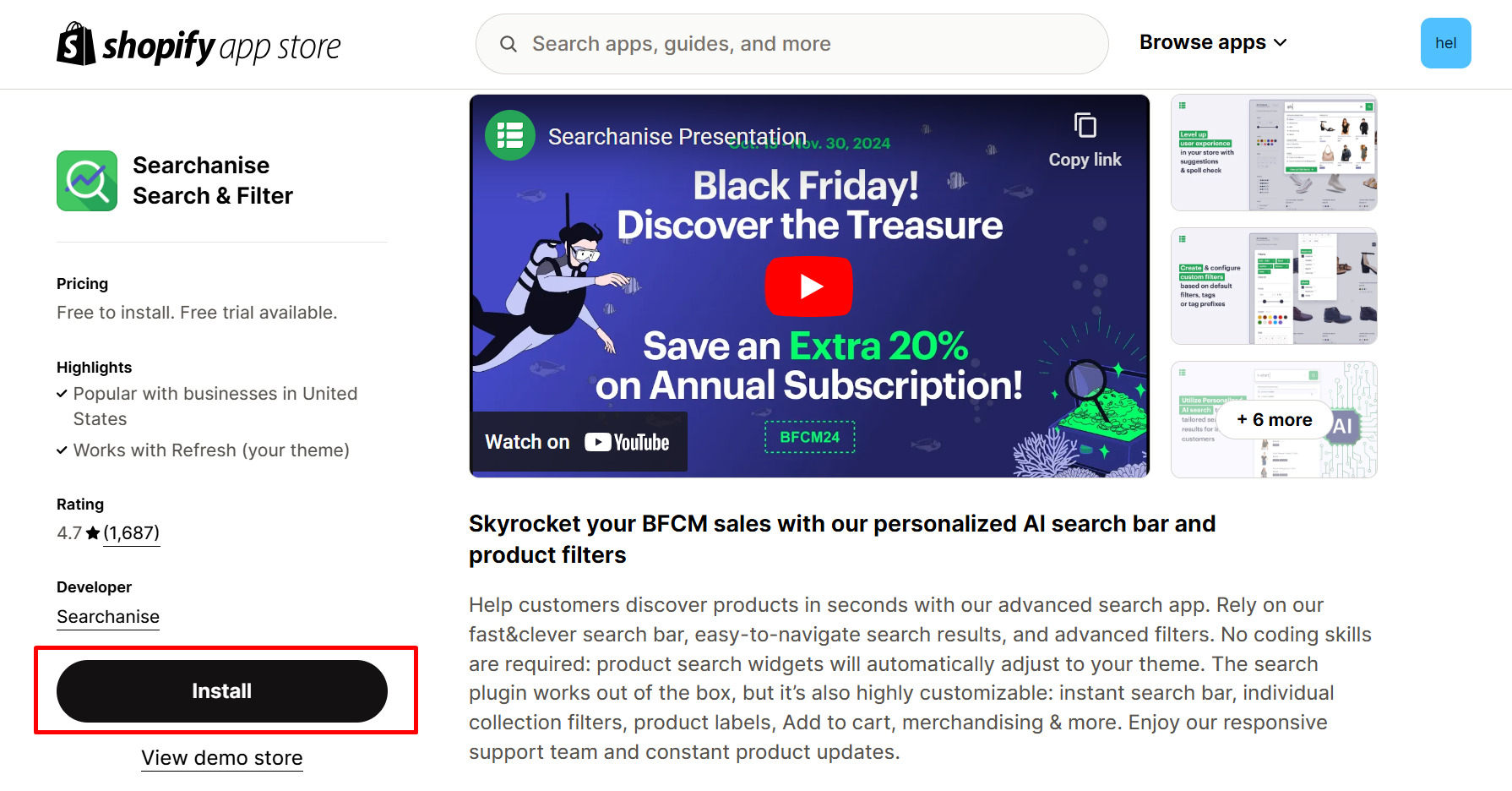 Step 1: Install the Searchanise Search & Filter app from the Shopify app store.