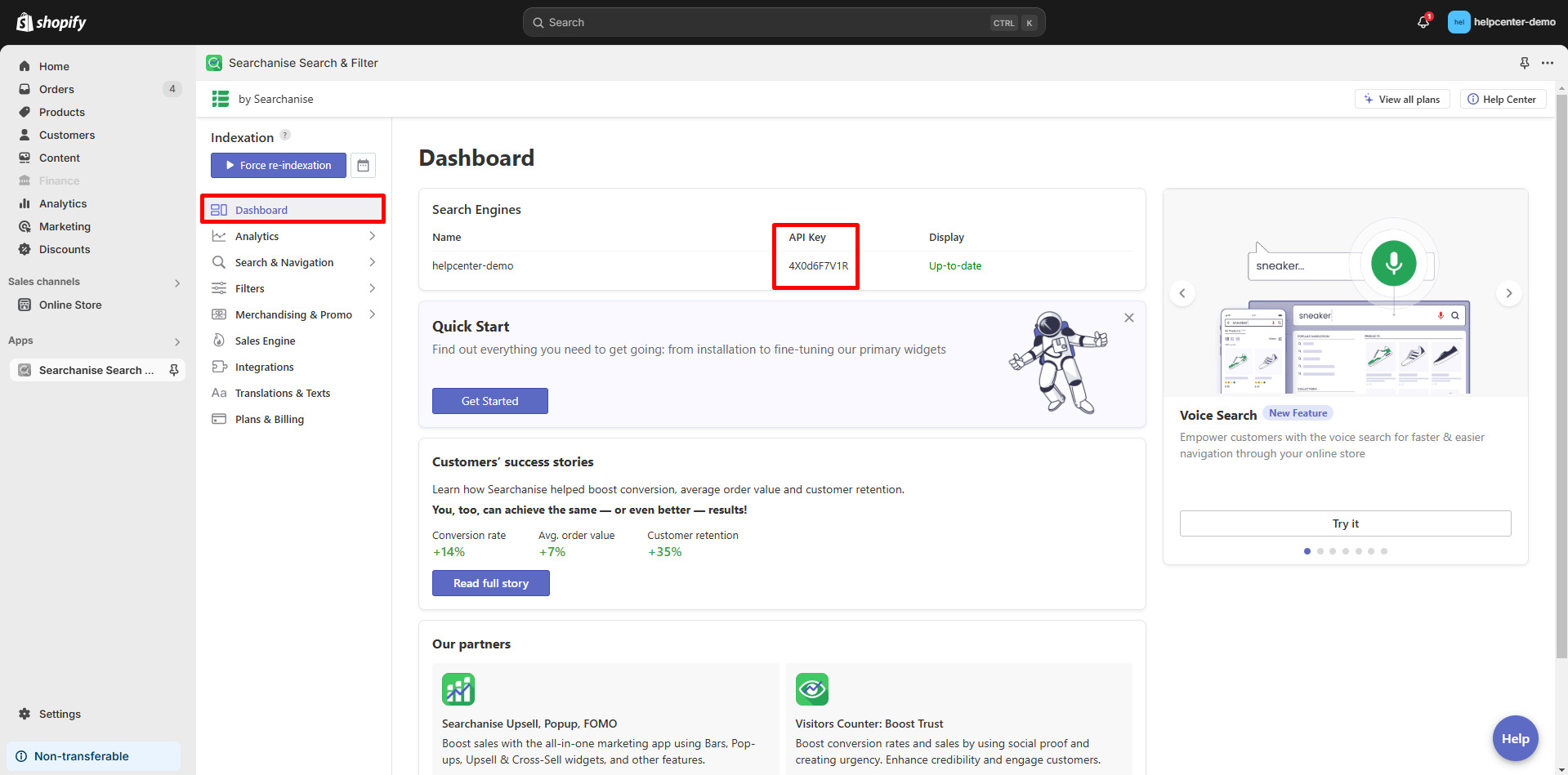 Step 8: From the app dashboard, click Force re-indexation to index your collections. If the status is Up-to-date, it should work appropriately.