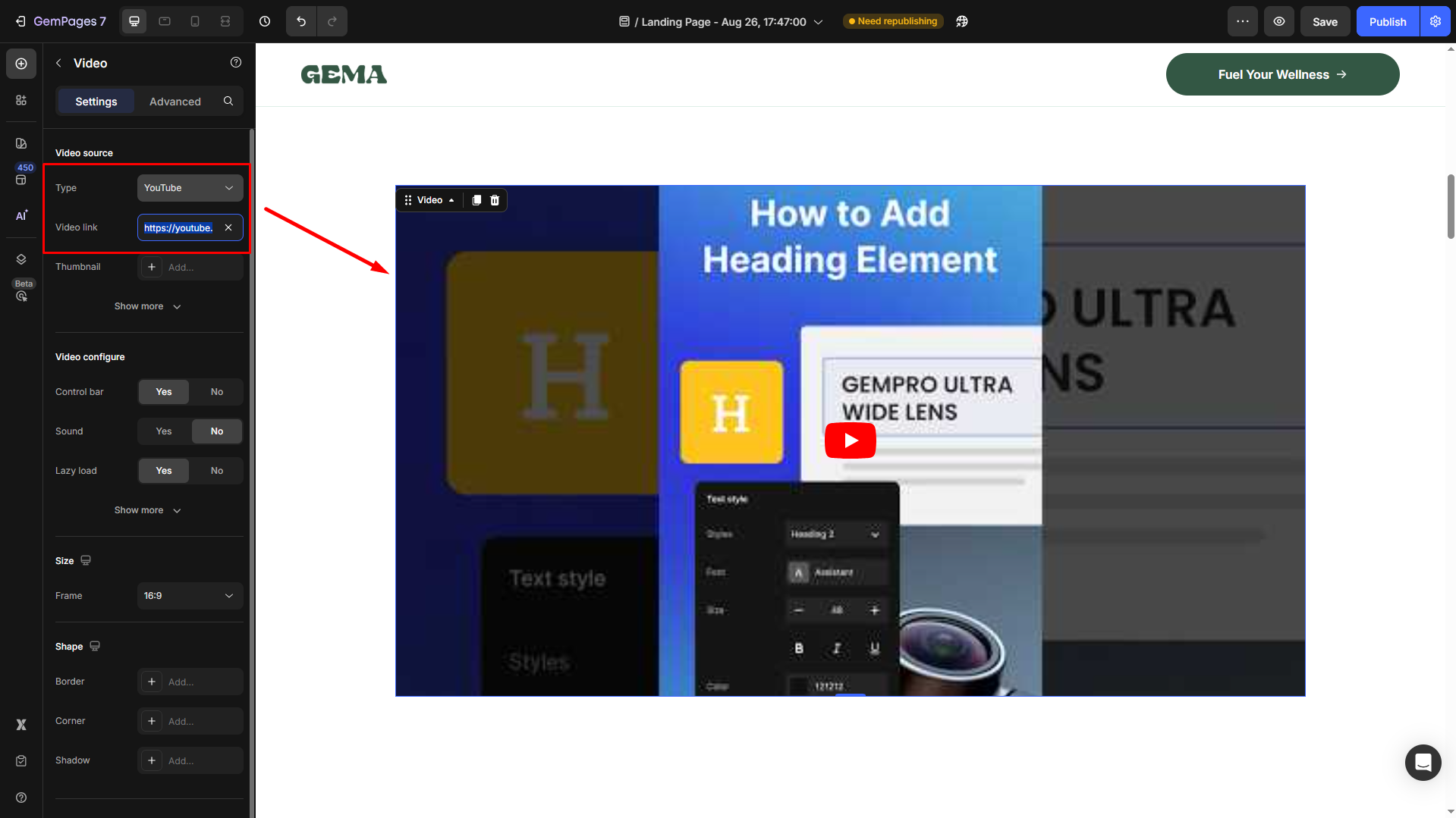 This article shows you how to add a YouTube Short on your GemPages page using the Video Element.