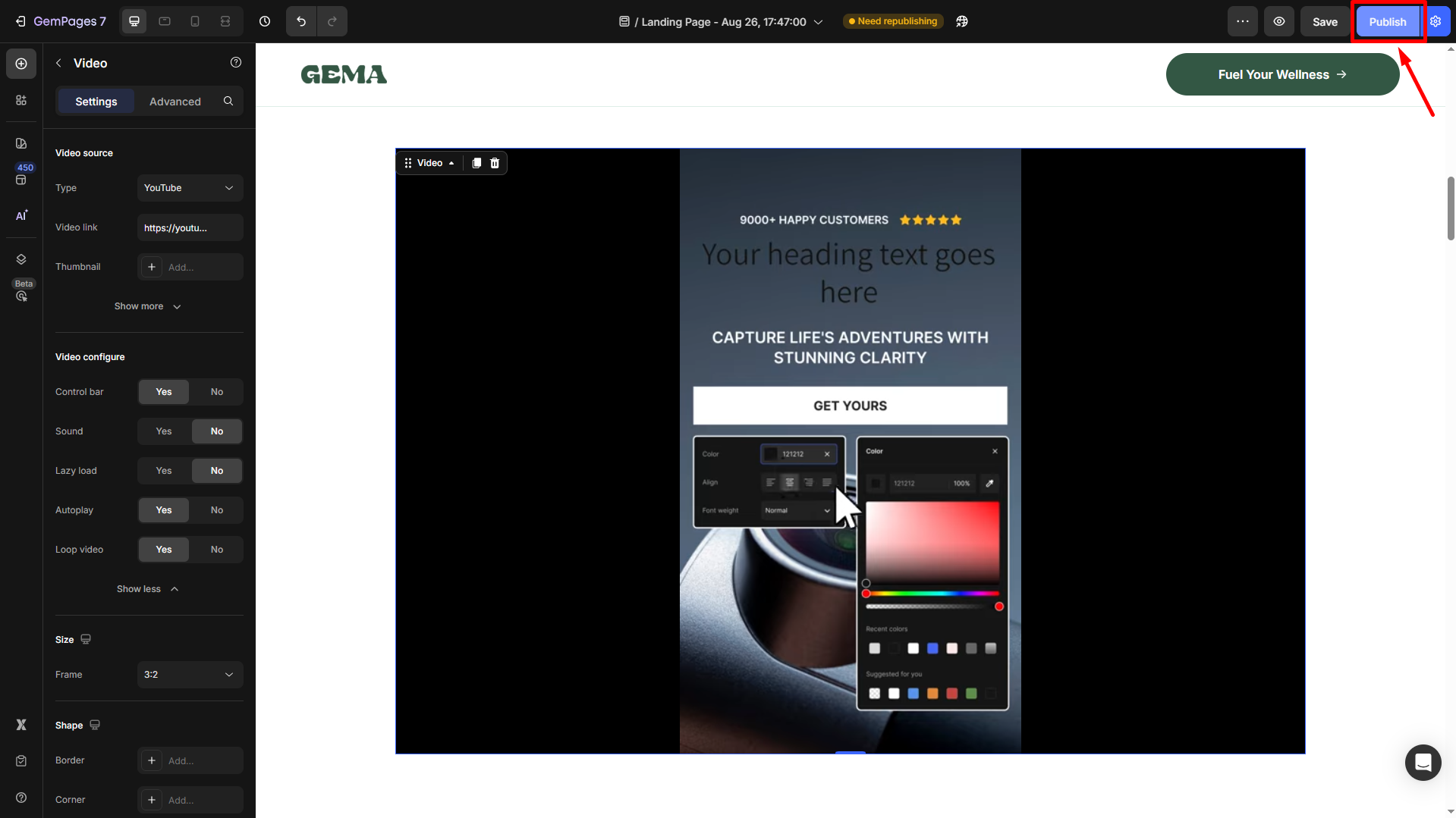 Within the GemPages Editor, you can add a YouTube Short to your landing page, homepage, product page, or any other GemPages layout.