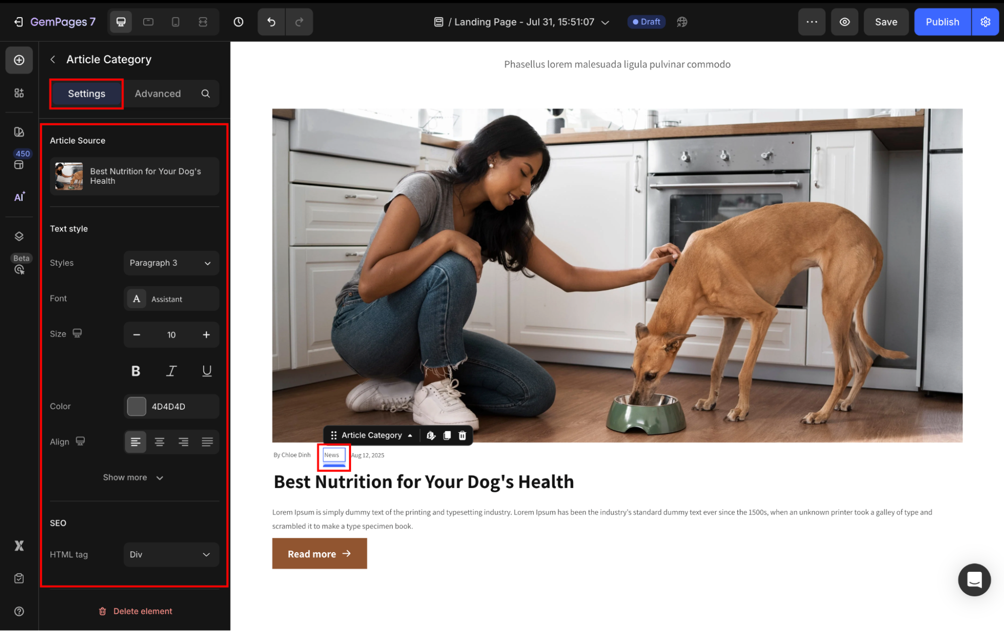 To help you customize the Article Author Element for your design, here’s a breakdown of its key settings: