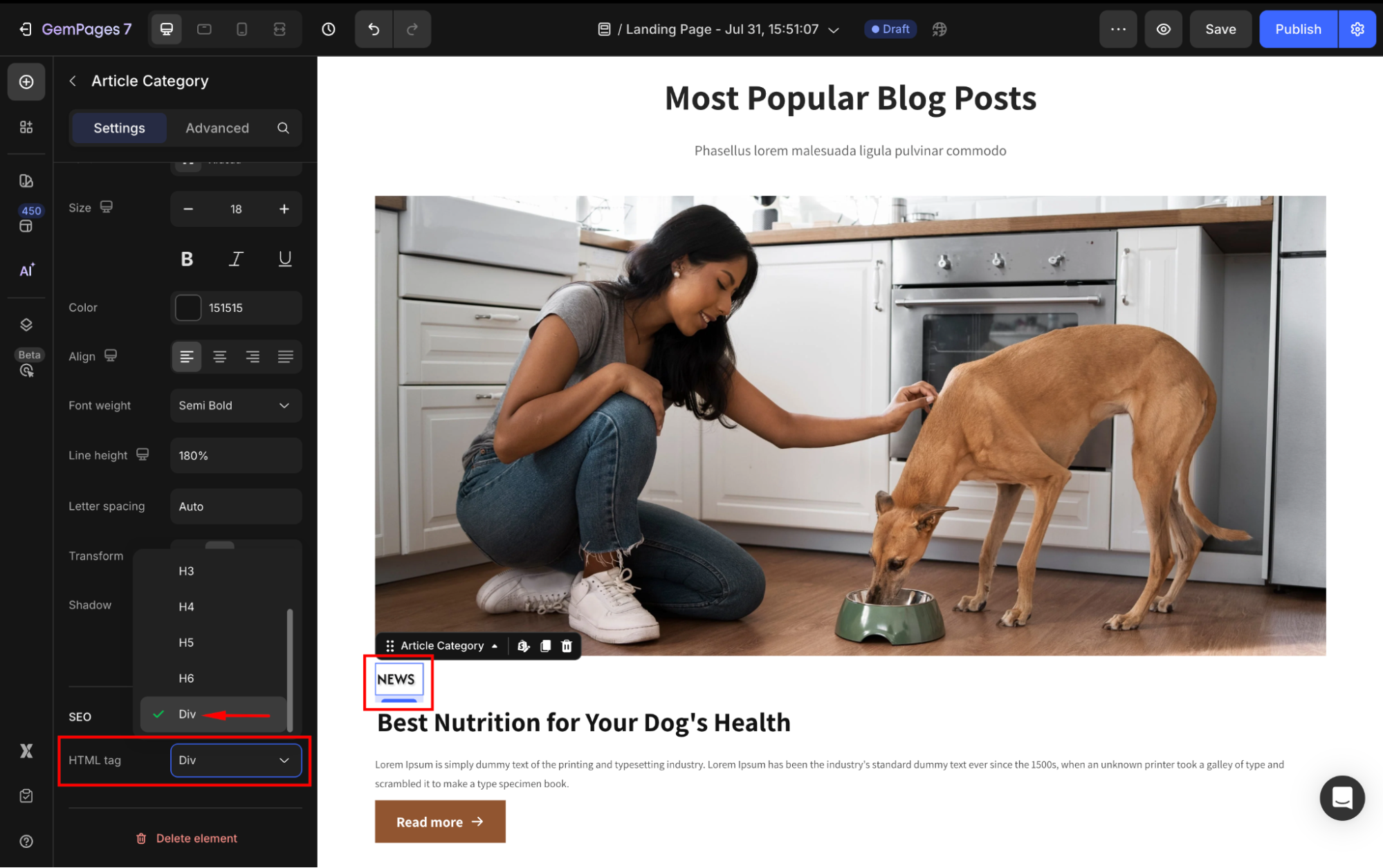 HTML Tag: Optimize your page’s SEO by selecting the appropriate HTML tag for the title.