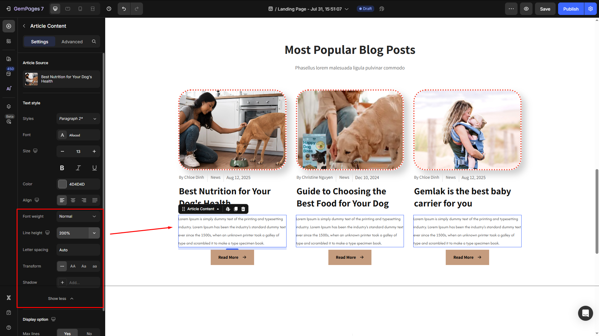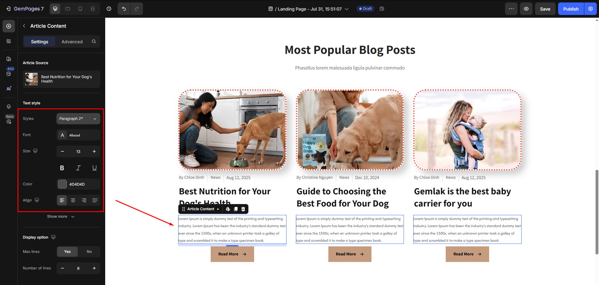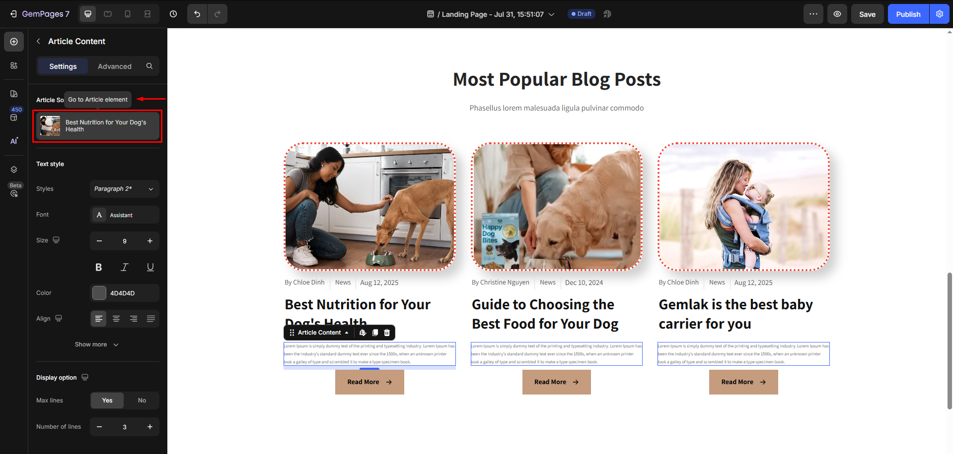 To help you customize the Article Content Element for your design, here’s a breakdown of its key settings: