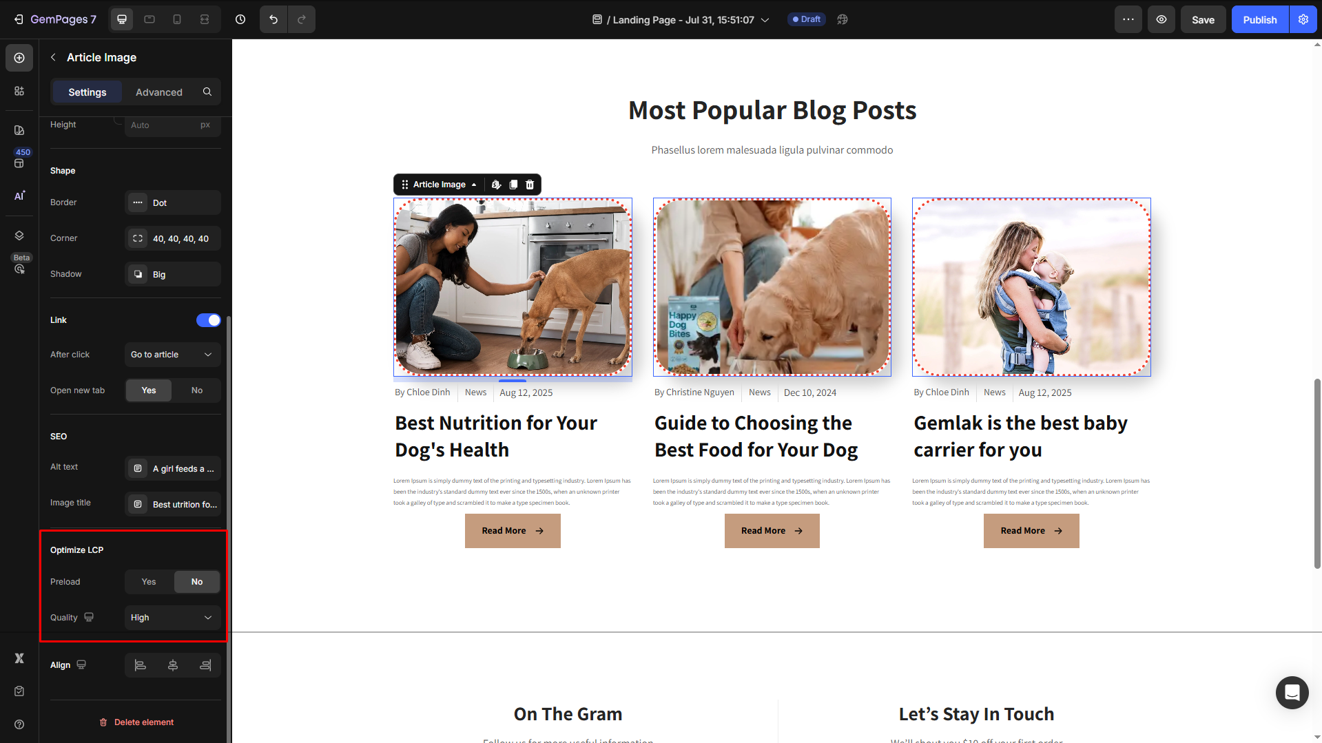 Preload: Enable this option if the image appears above the fold and is one of the main visual elements on the page.