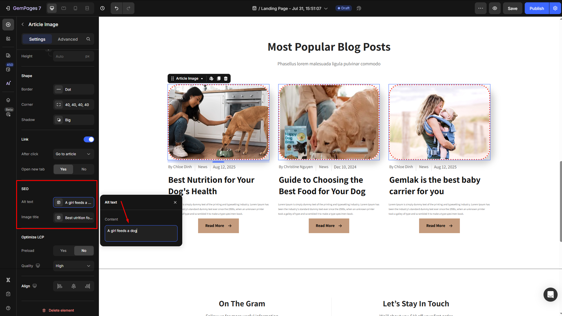 - Alt Text: Provide a description of the image for accessibility and SEO. This text is displayed if the image fails to load and helps search engines understand the content.