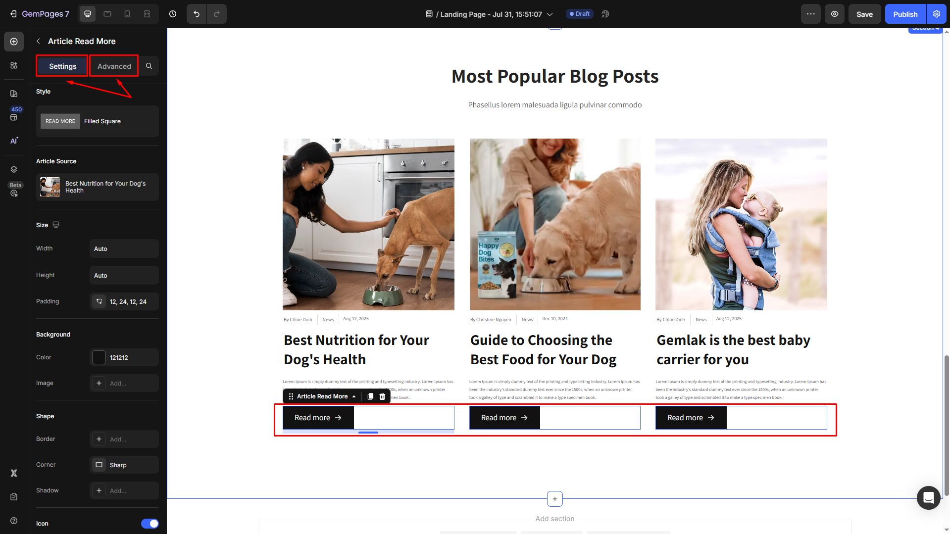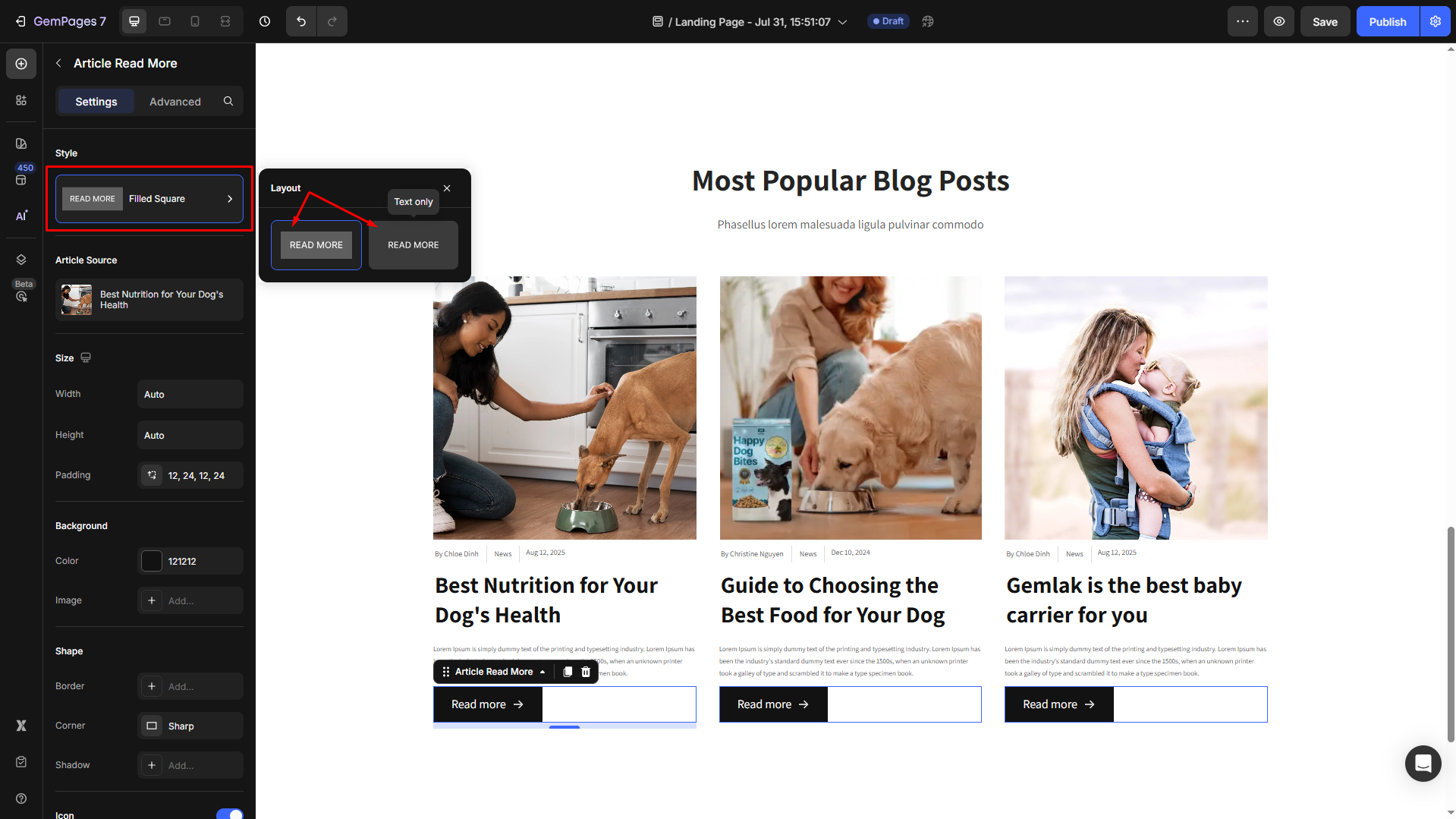 The Article Read More Element comes with multiple customization options to match your design and functional needs: