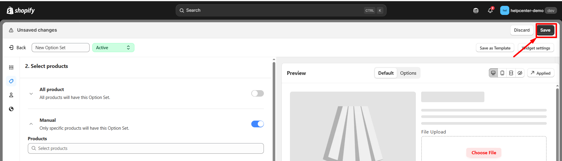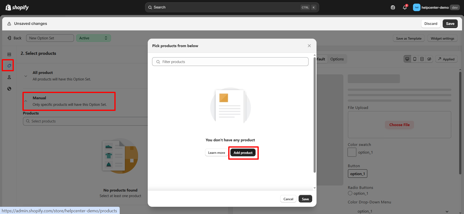 Step 6: Go to the Product tab, choose “Manual” and select a product you want to apply options to.