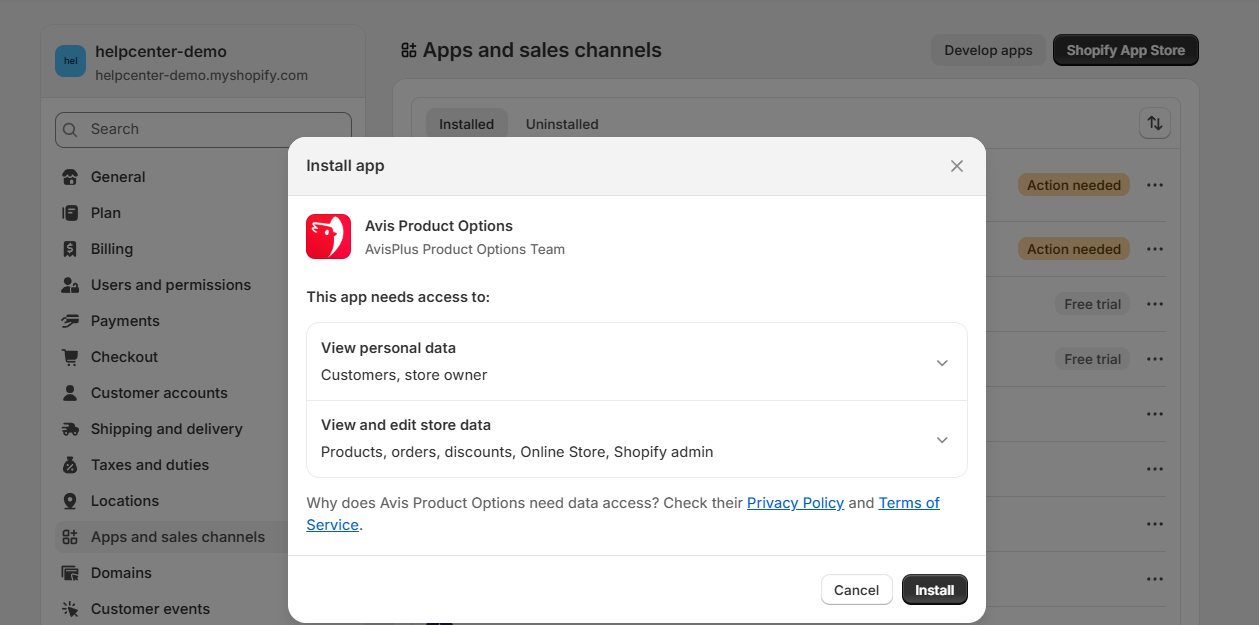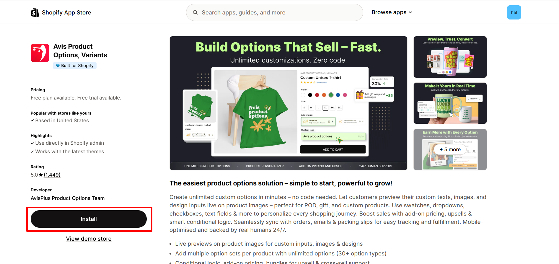 Step 1: Install Avis Product Options, Variants in the Shopify App Store.