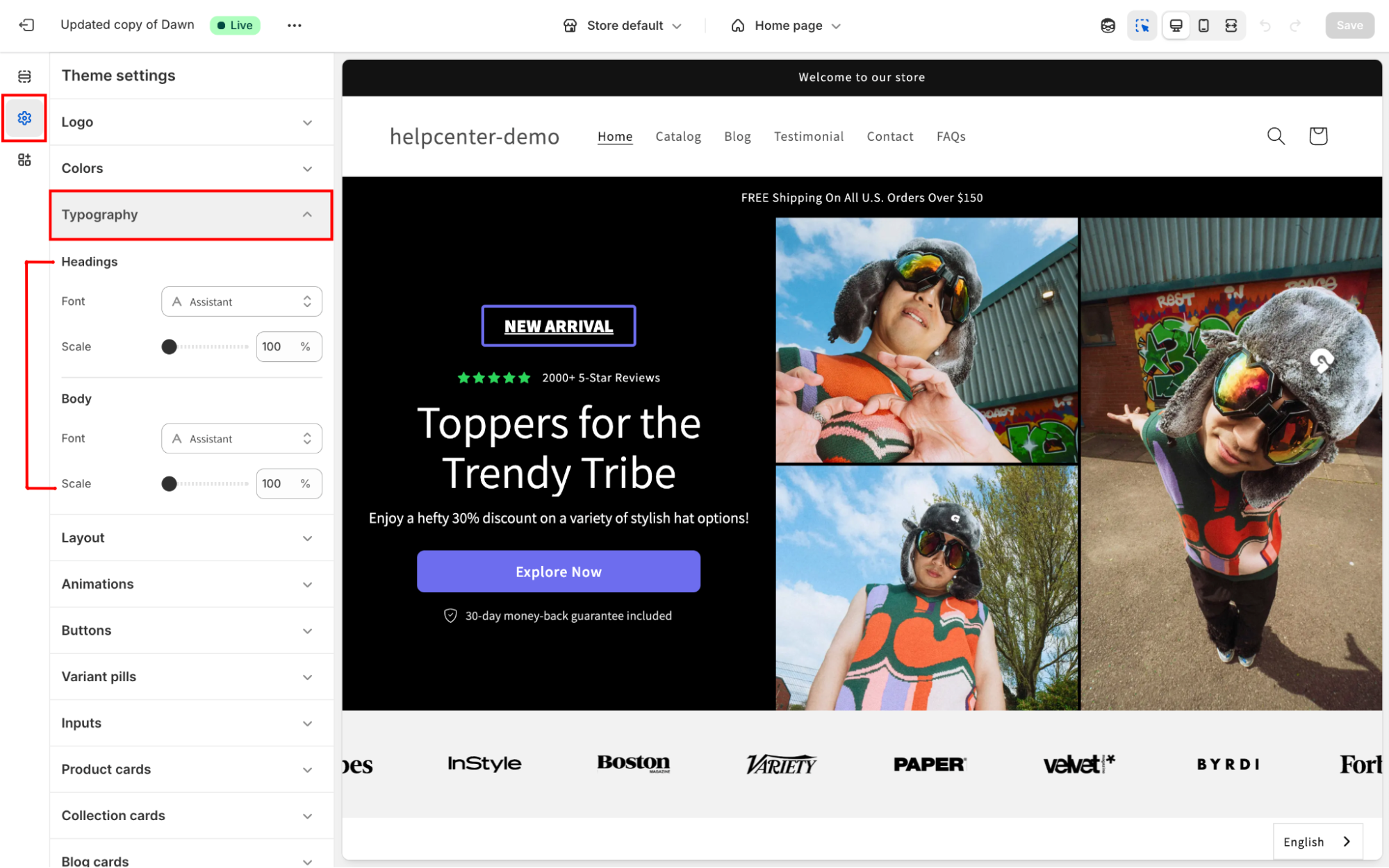 The simplest way to adjust font sizes across your store is through the Theme Editor.