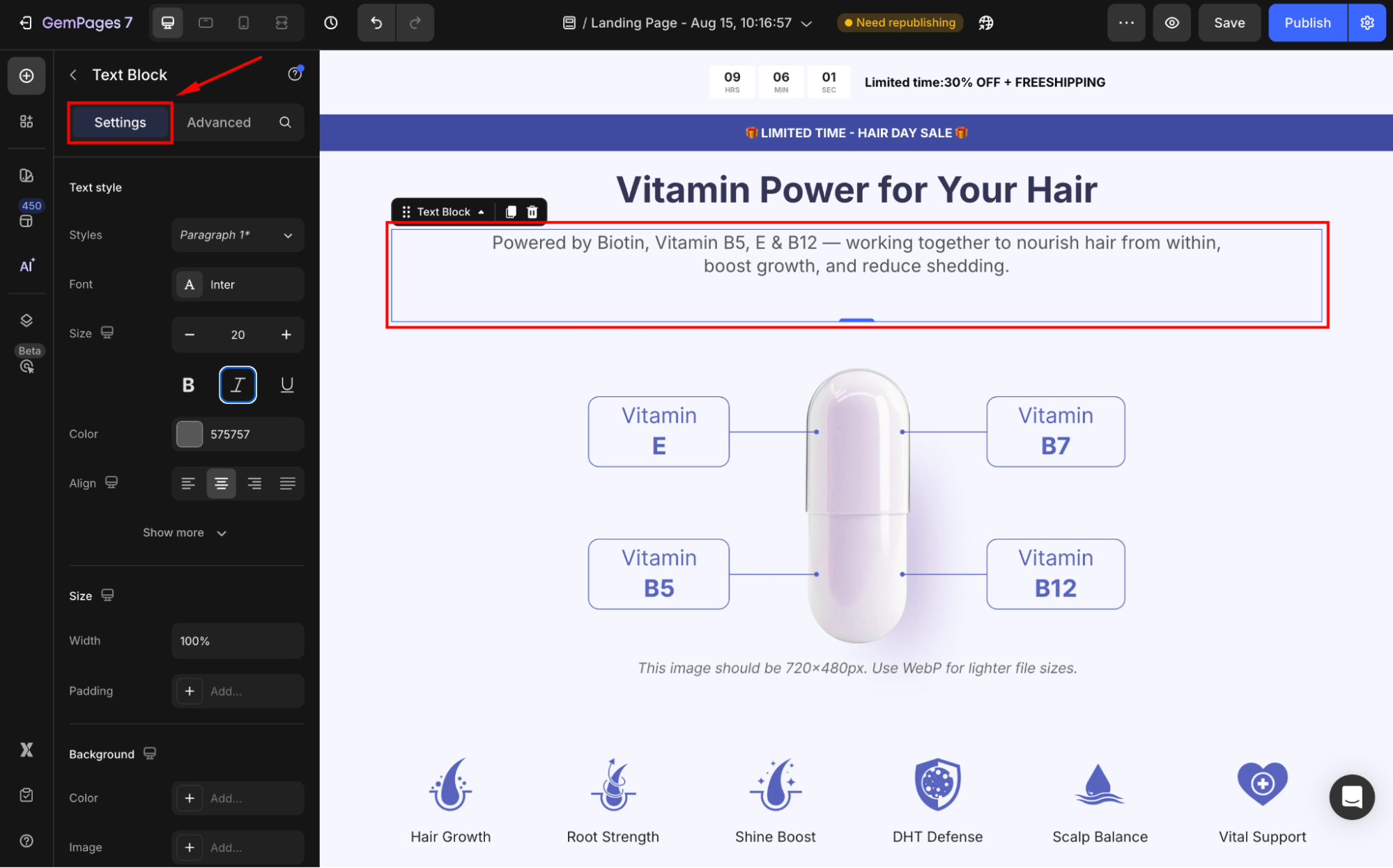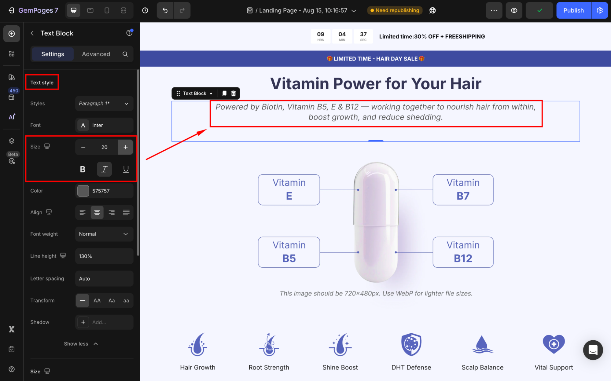 If you prefer a visual, no-code solution, GemPages makes it easy to adjust text size directly in the editor.
