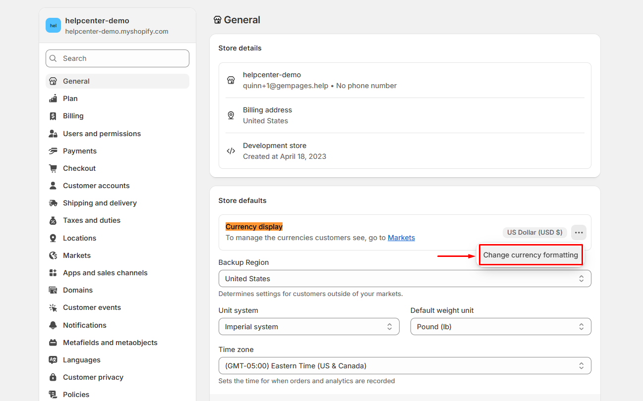 Step 2: Under the Store default, you’ll see the Currency display.