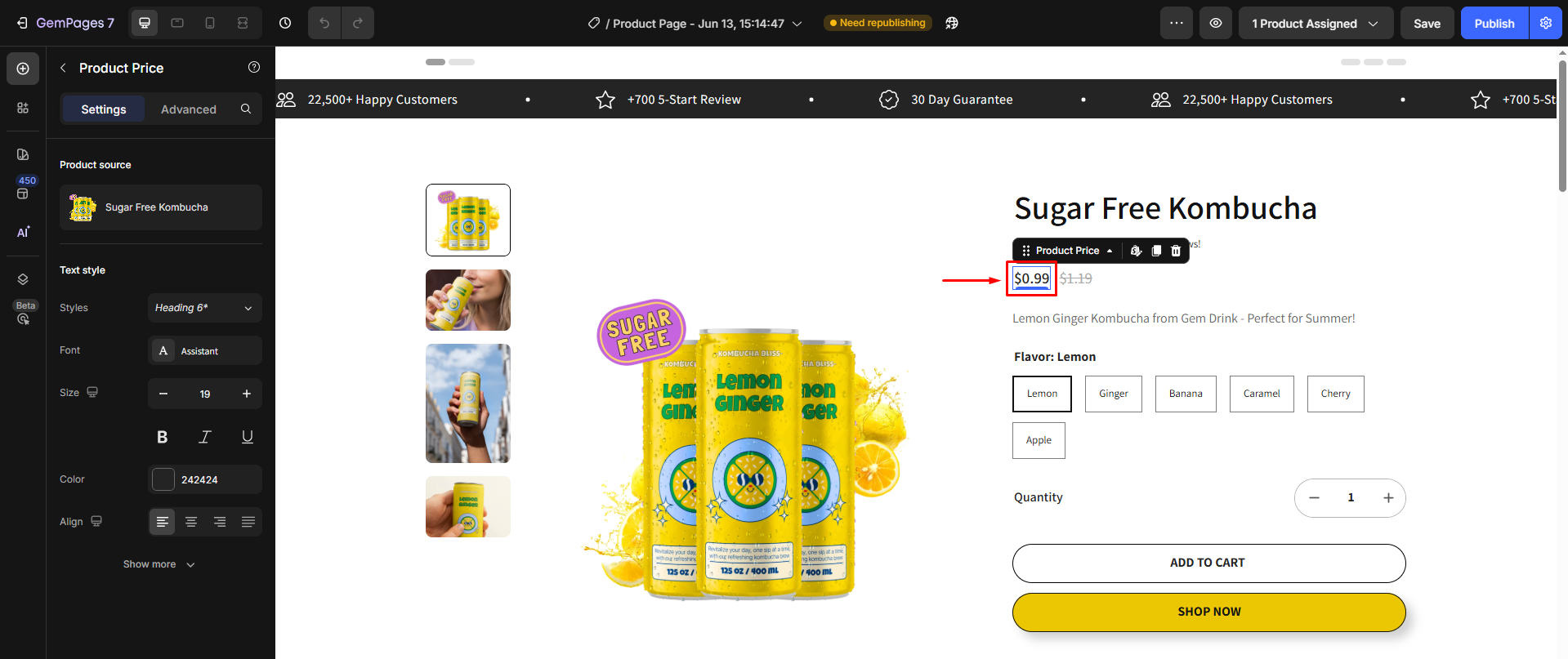 Afterward, the next time you open the GemPages editor, your product price will be updated.