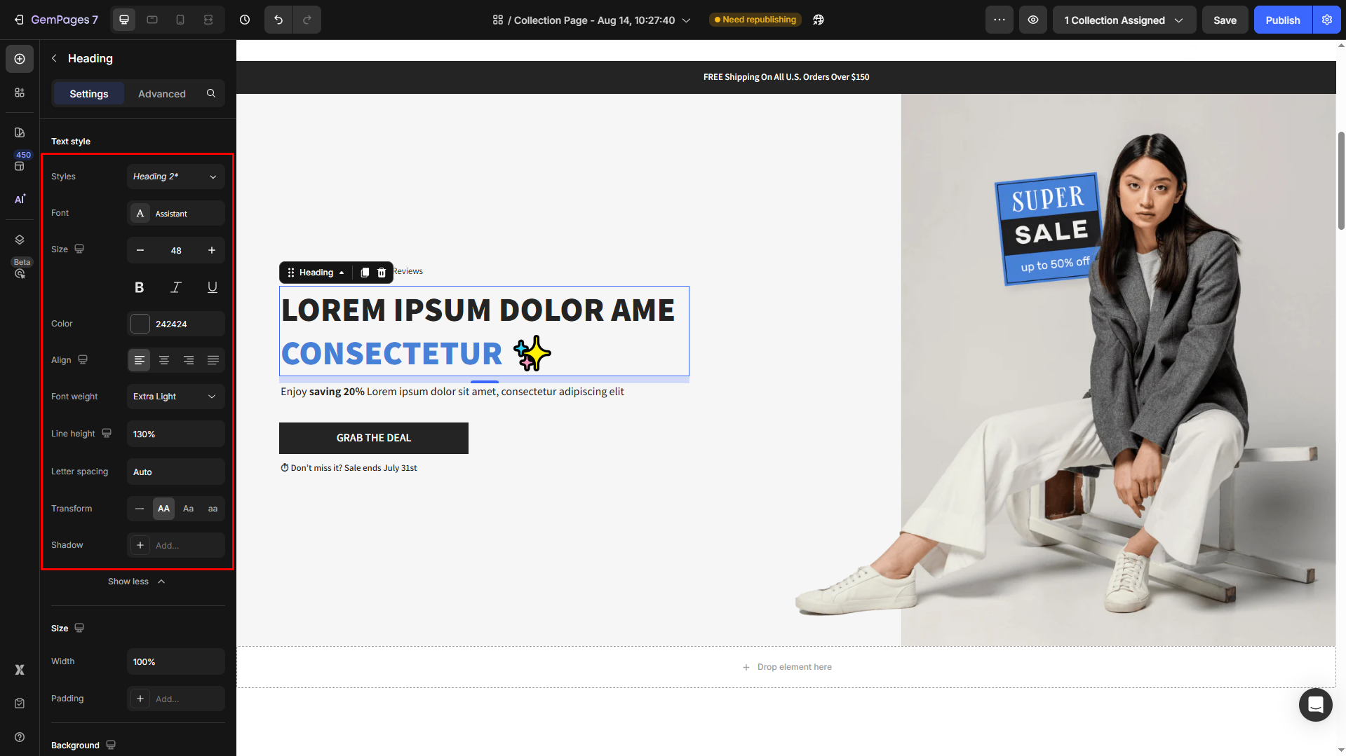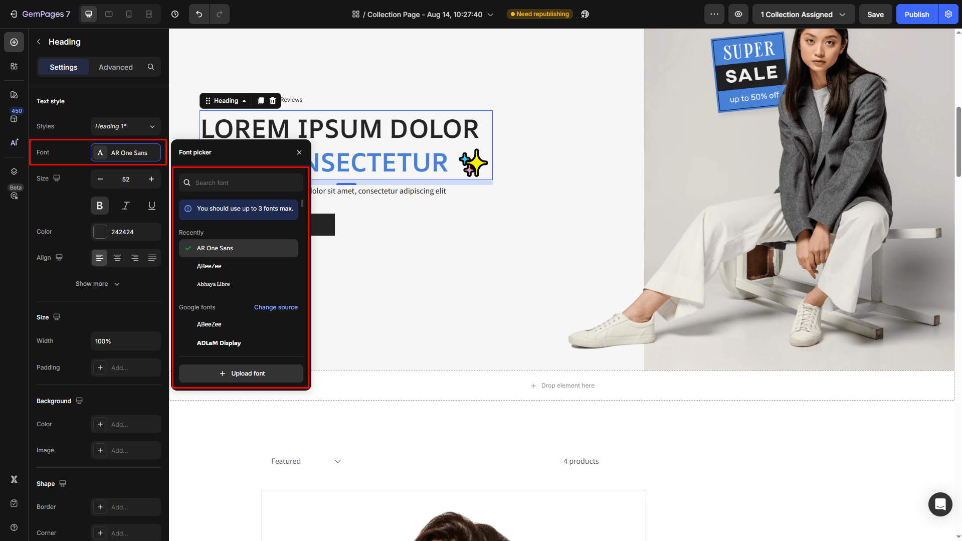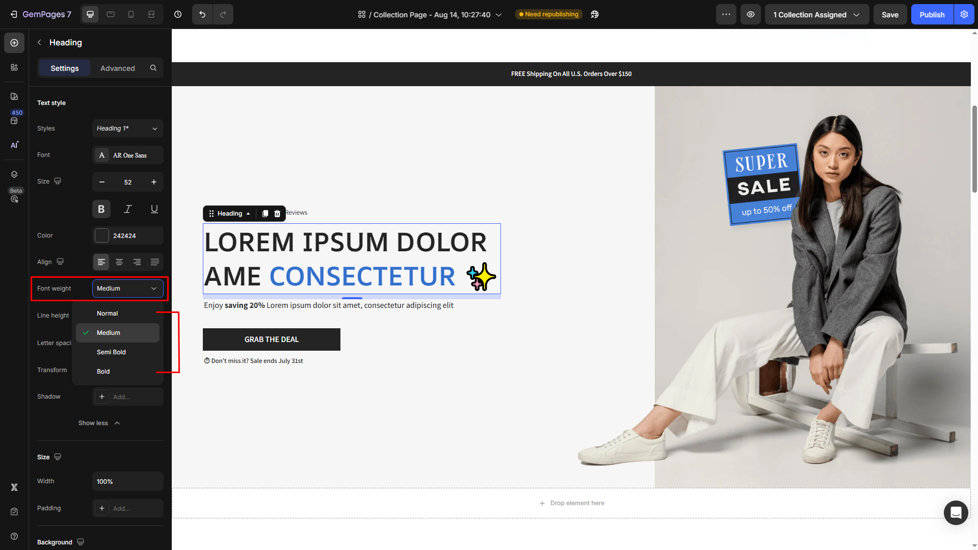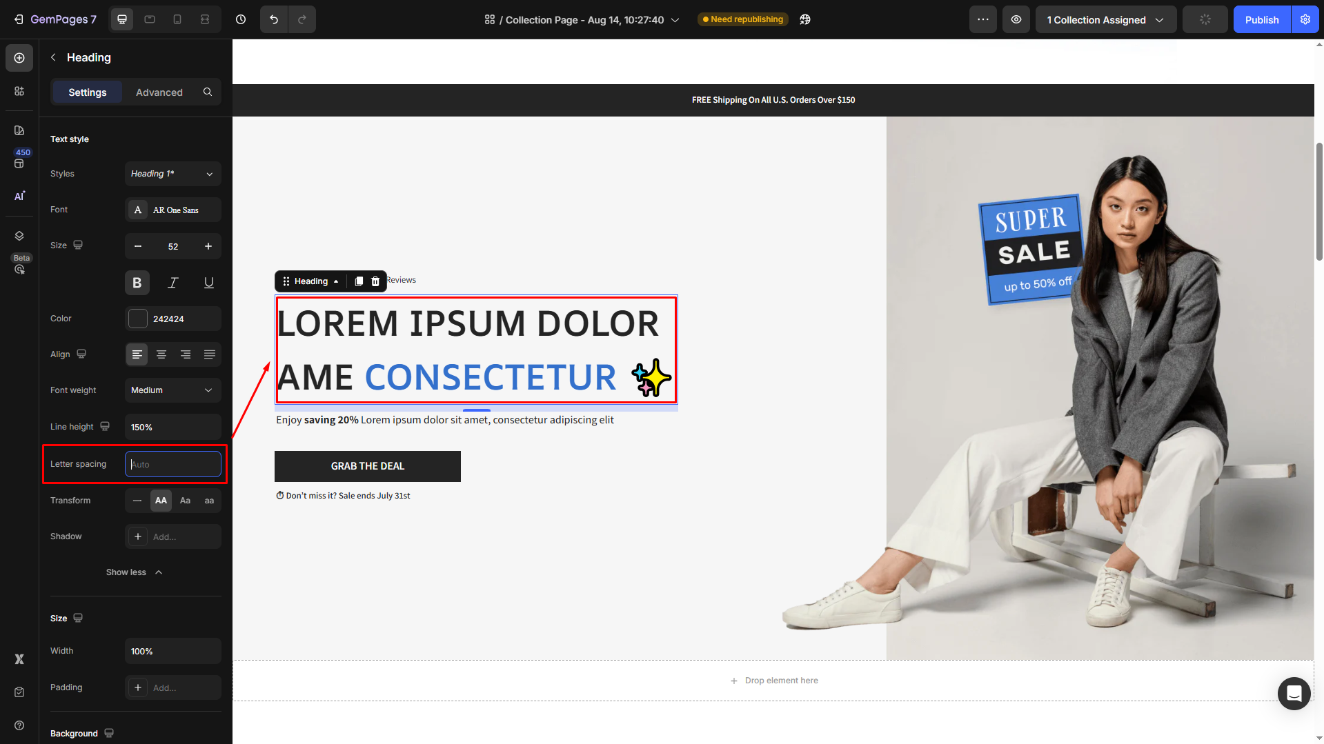 Select a font that matches your brand identity. GemPages integrates with Google Fonts, so you’ll have plenty of options to choose from.