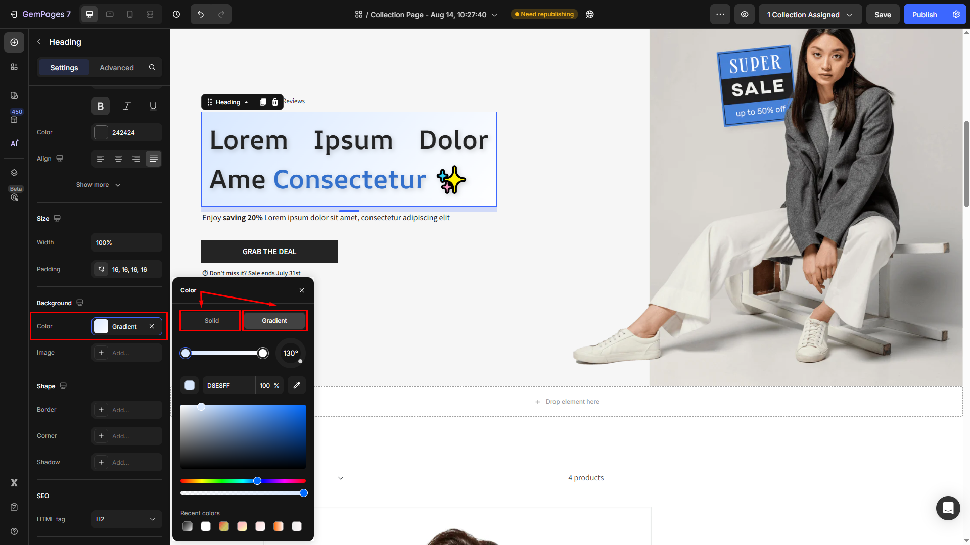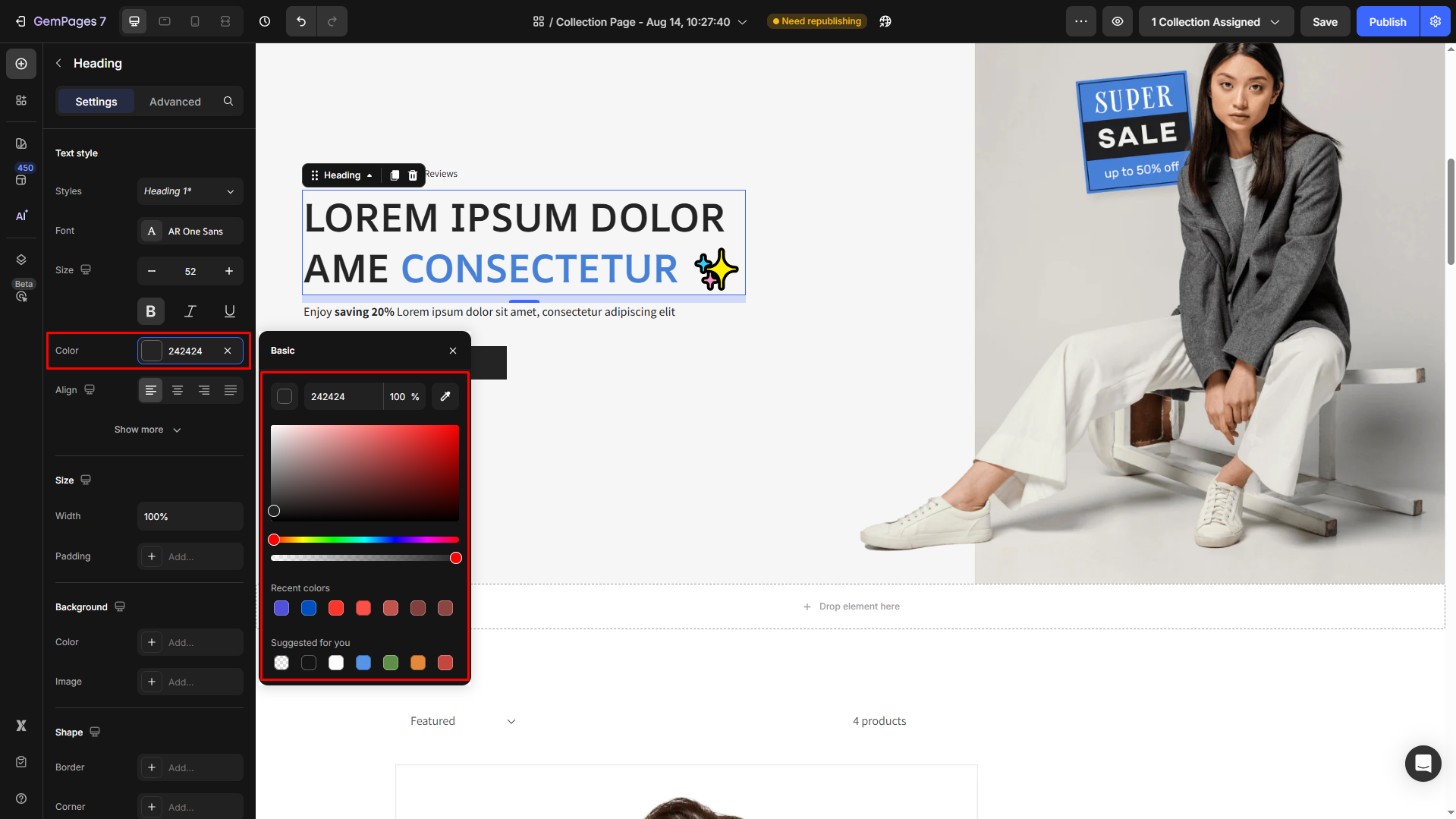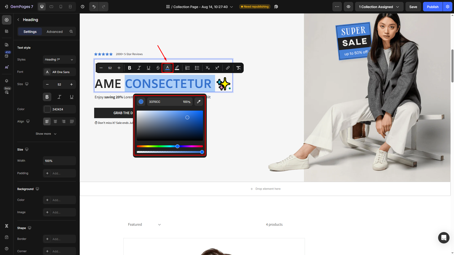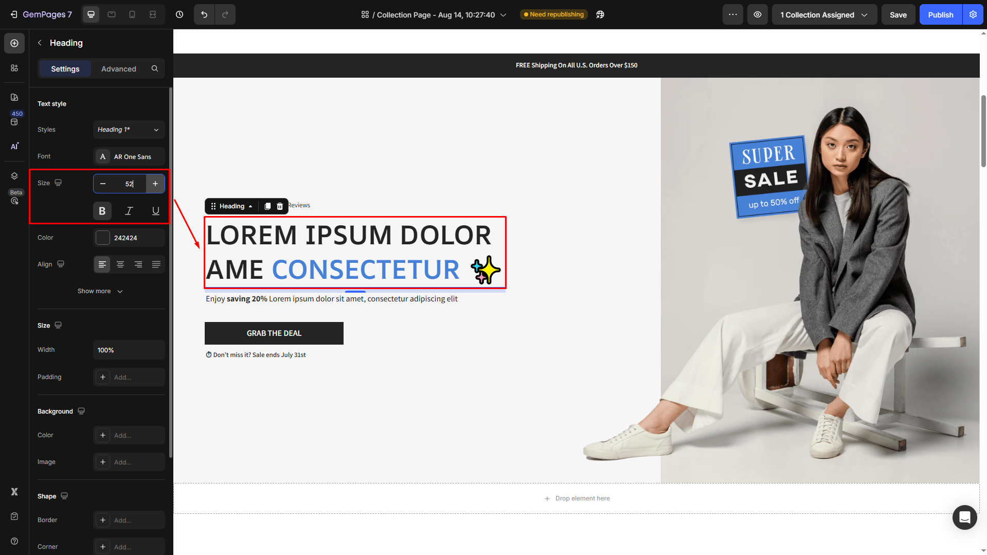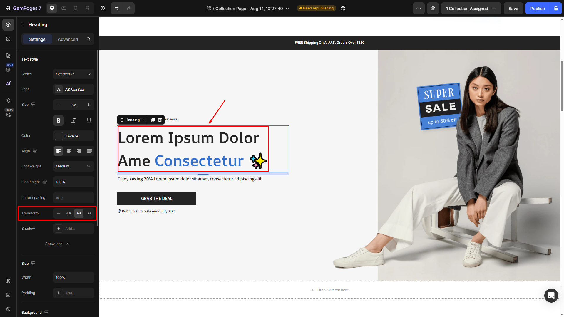 Select a font that matches your brand identity. GemPages integrates with Google Fonts, so you’ll have plenty of options to choose from.