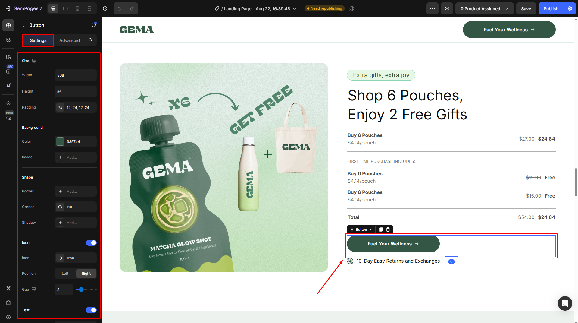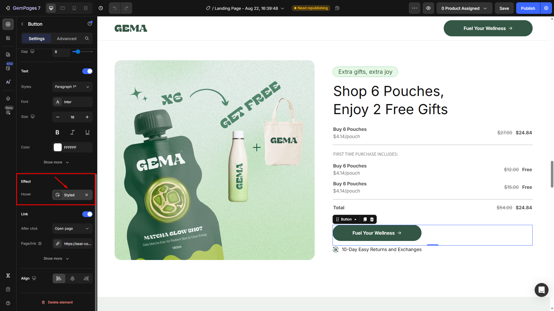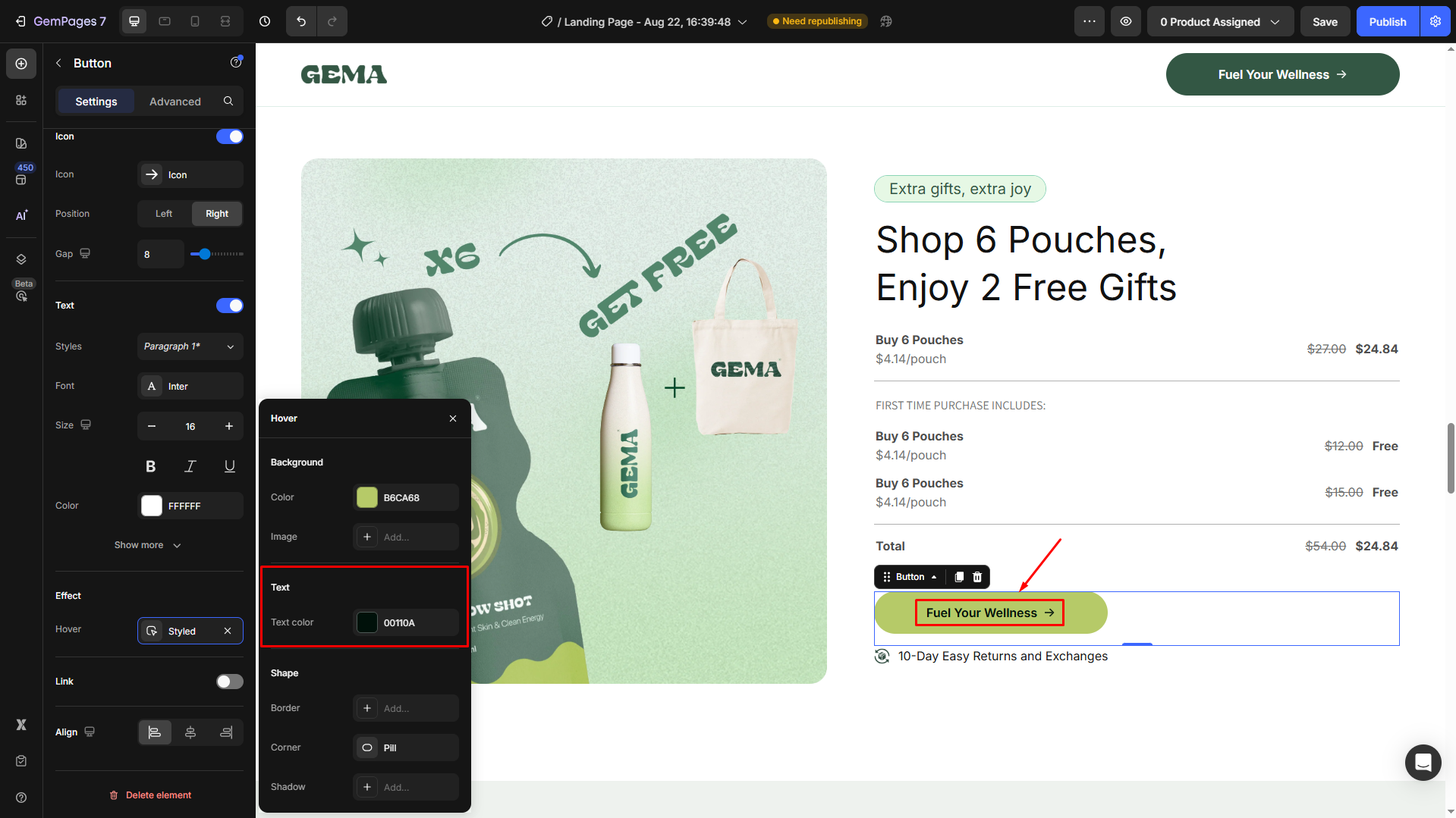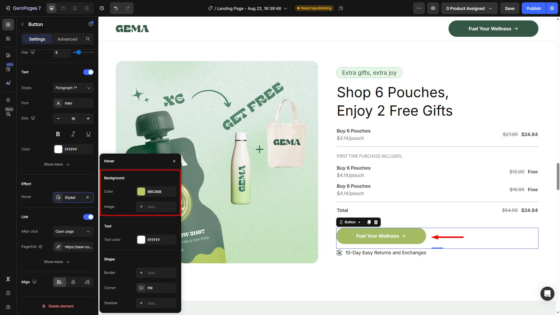 How to Change the Hover Styles of a Button in GemPages?