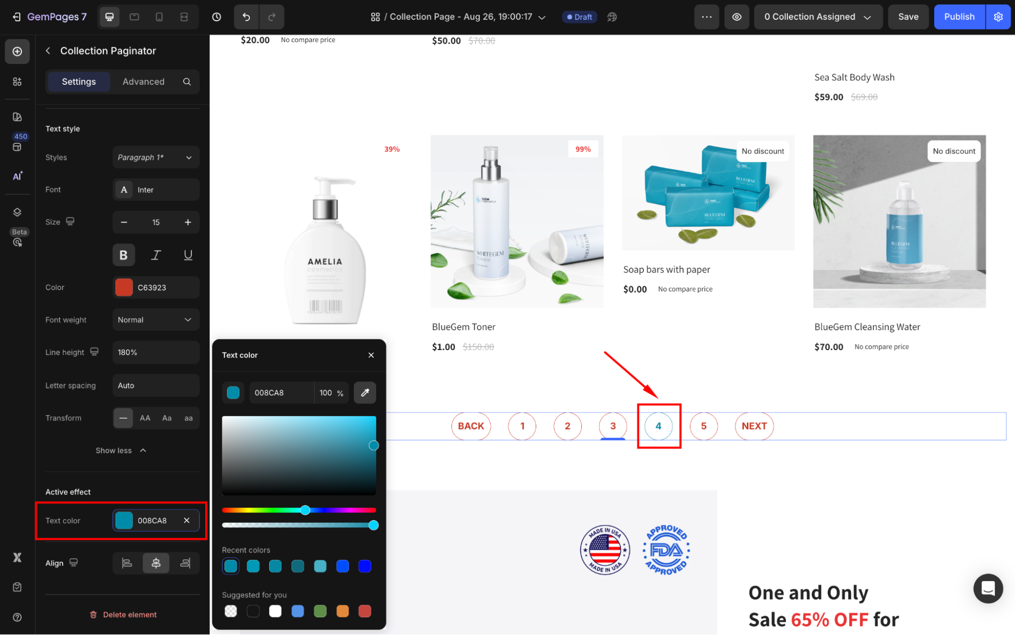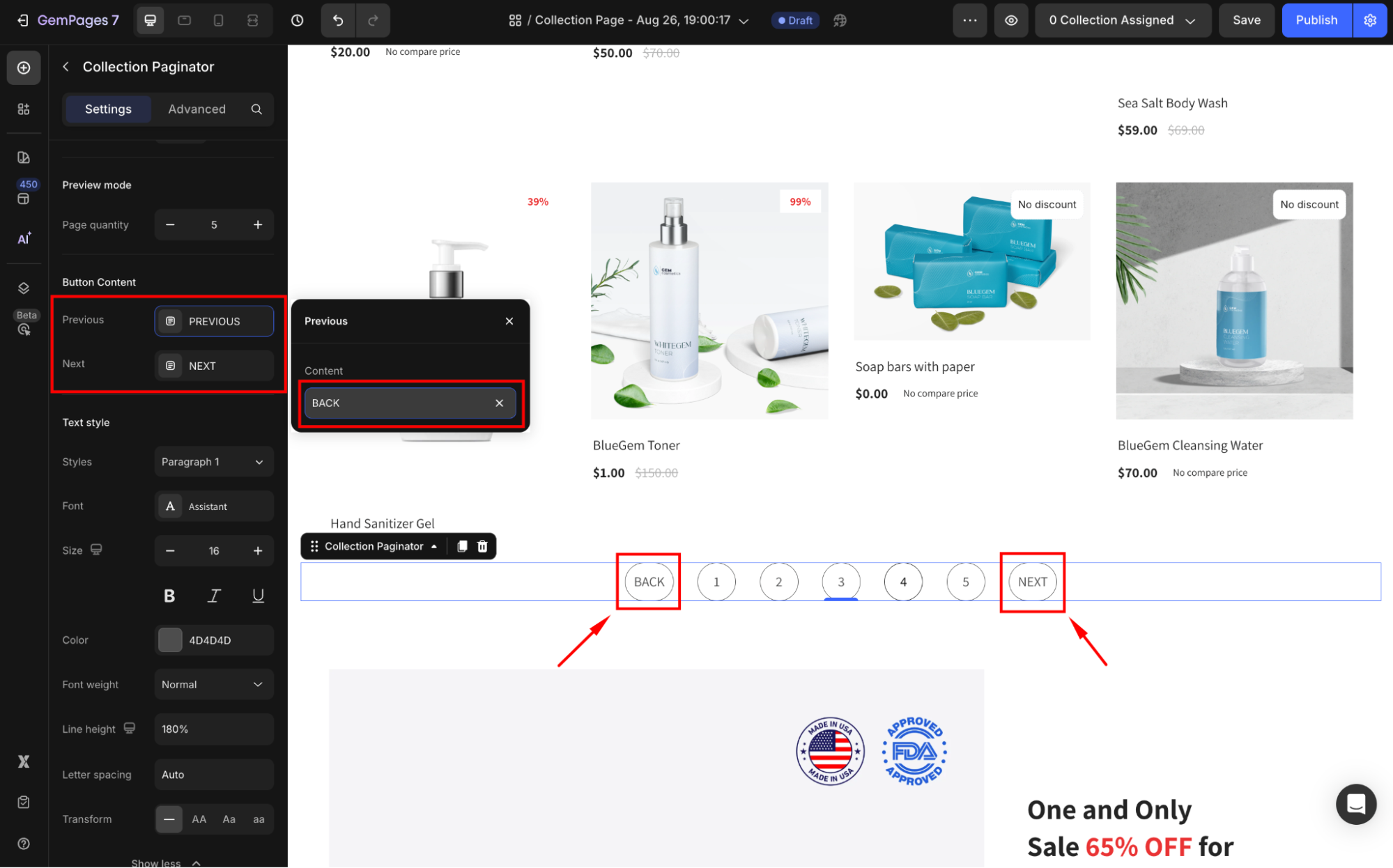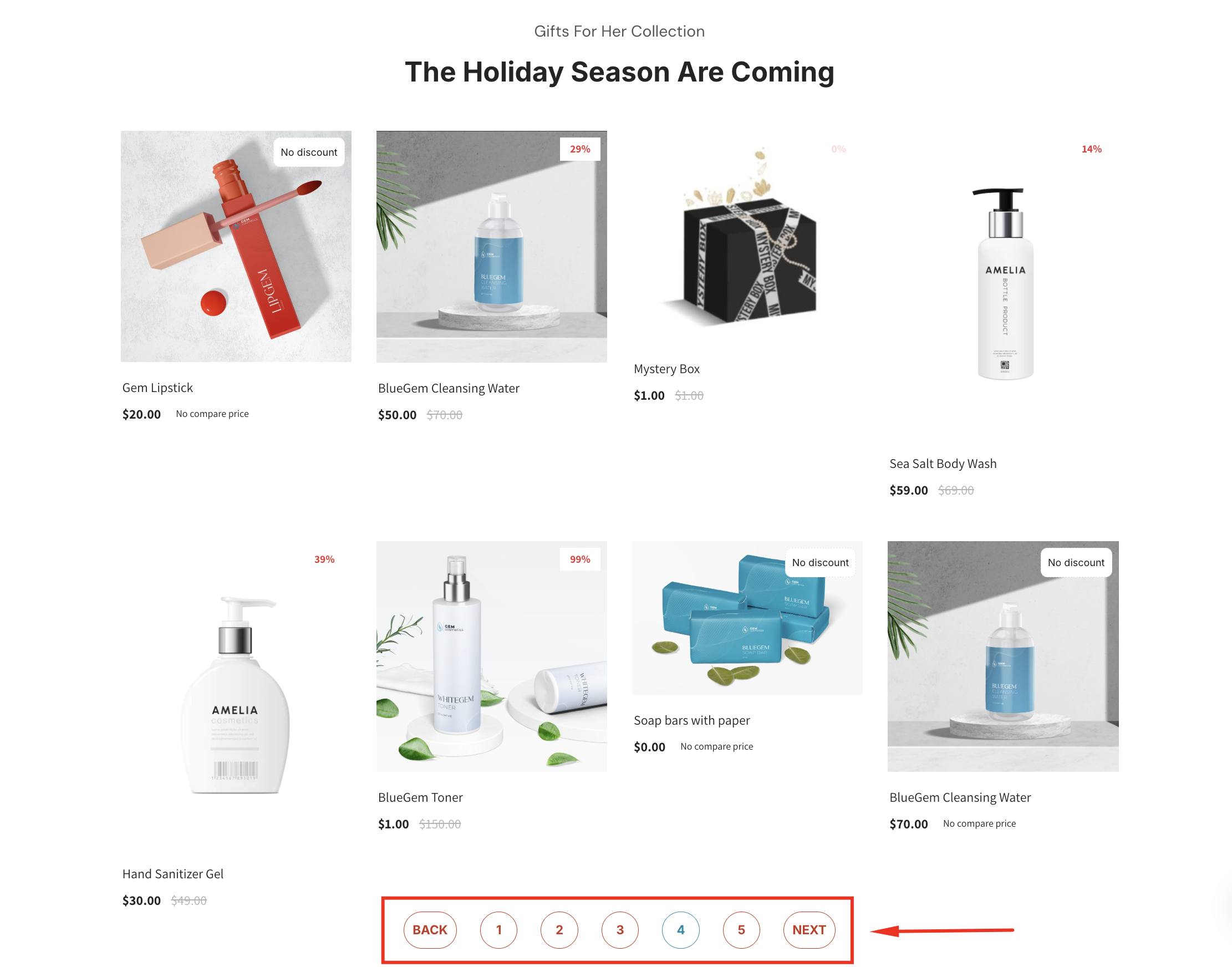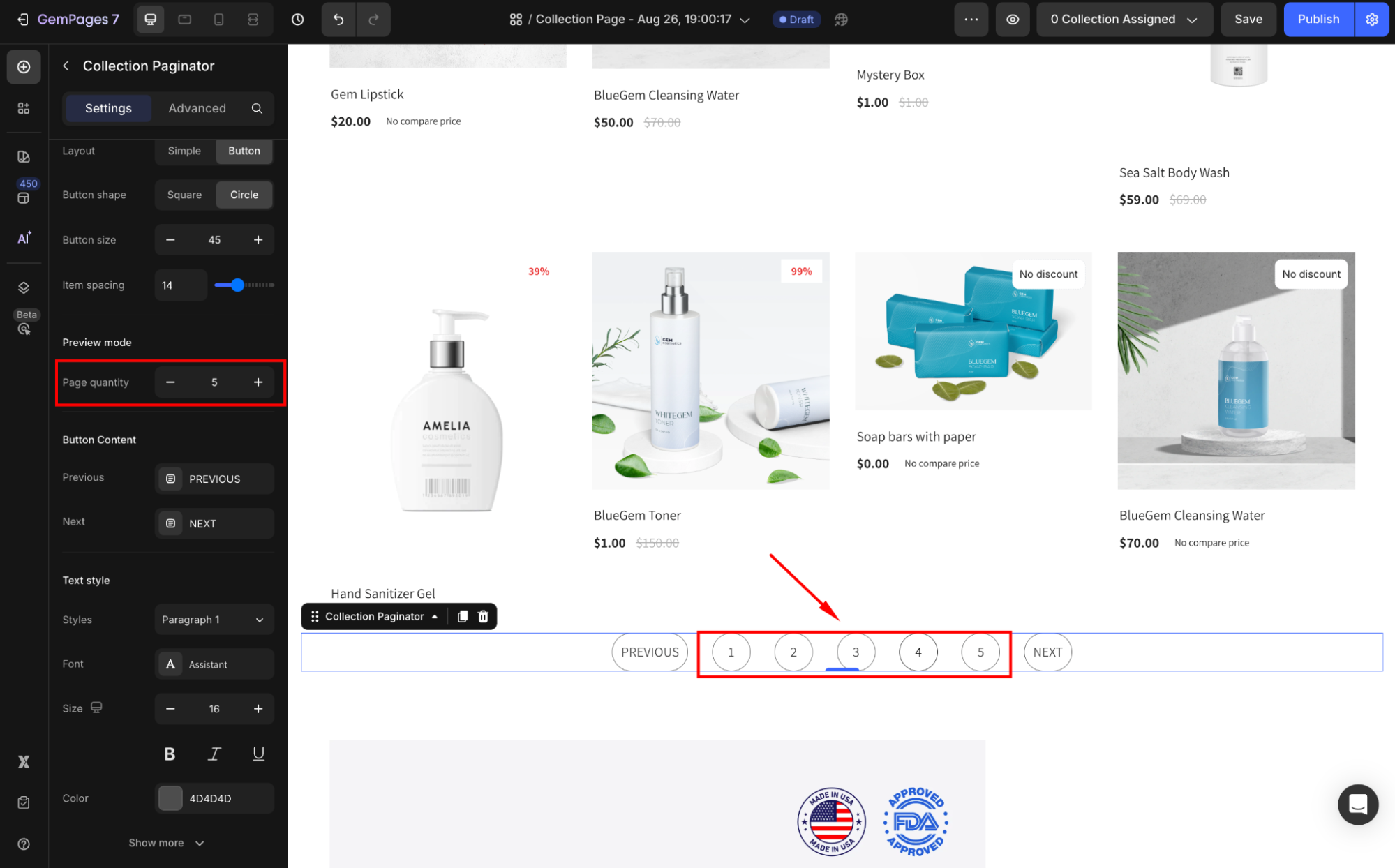 Adjust the Page quantity to preview different scenarios, such as 5, 10, or 20 products per page.
