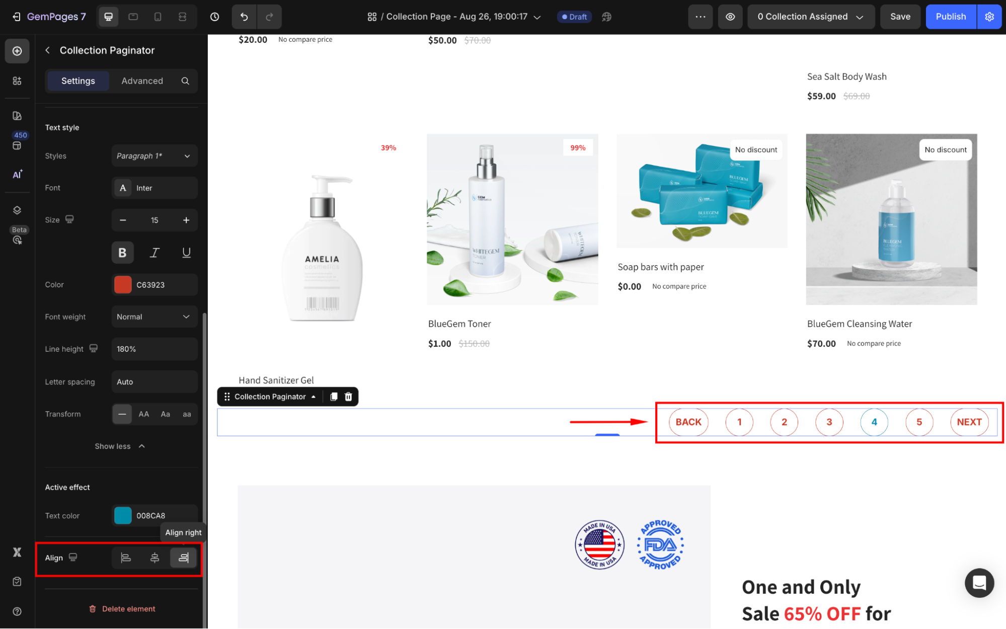 Adjust the horizontal alignment of the paginator (Left, Center, or Right) to fit your page layout.