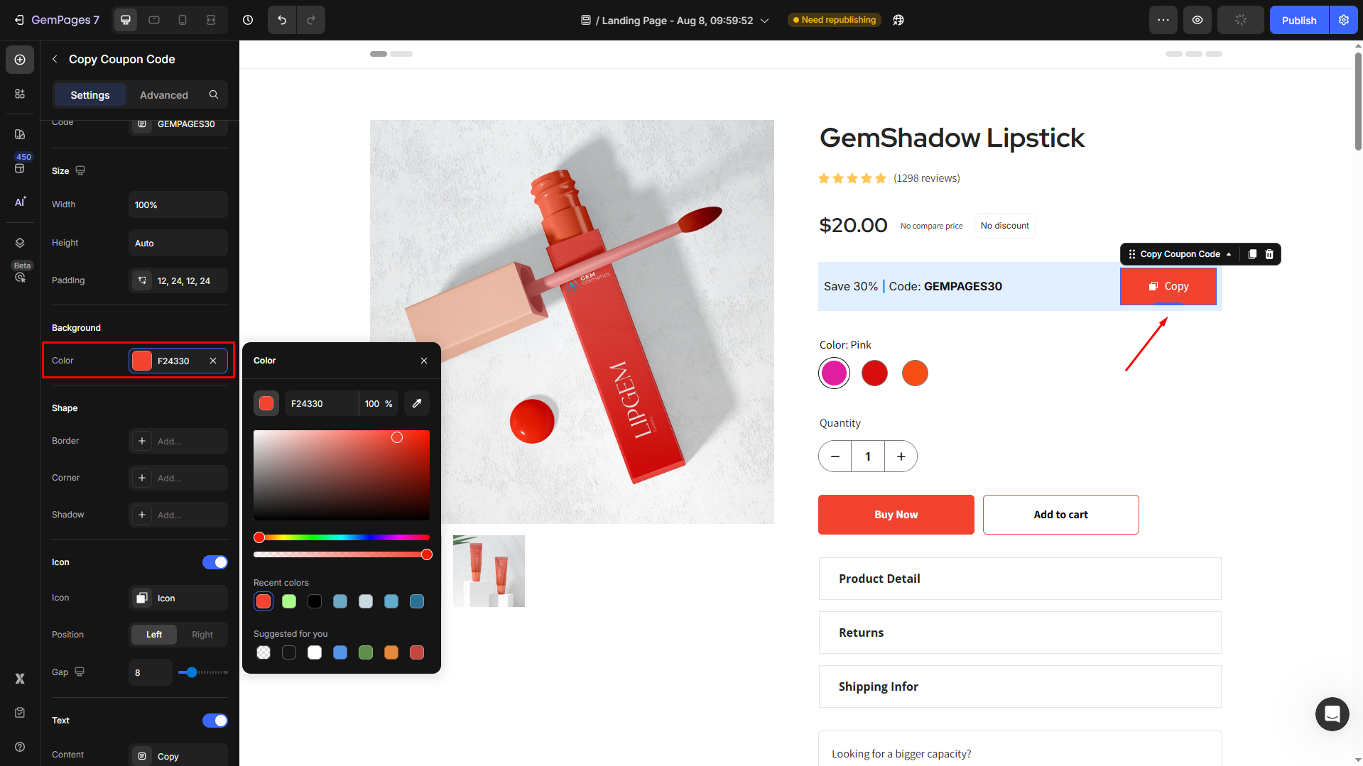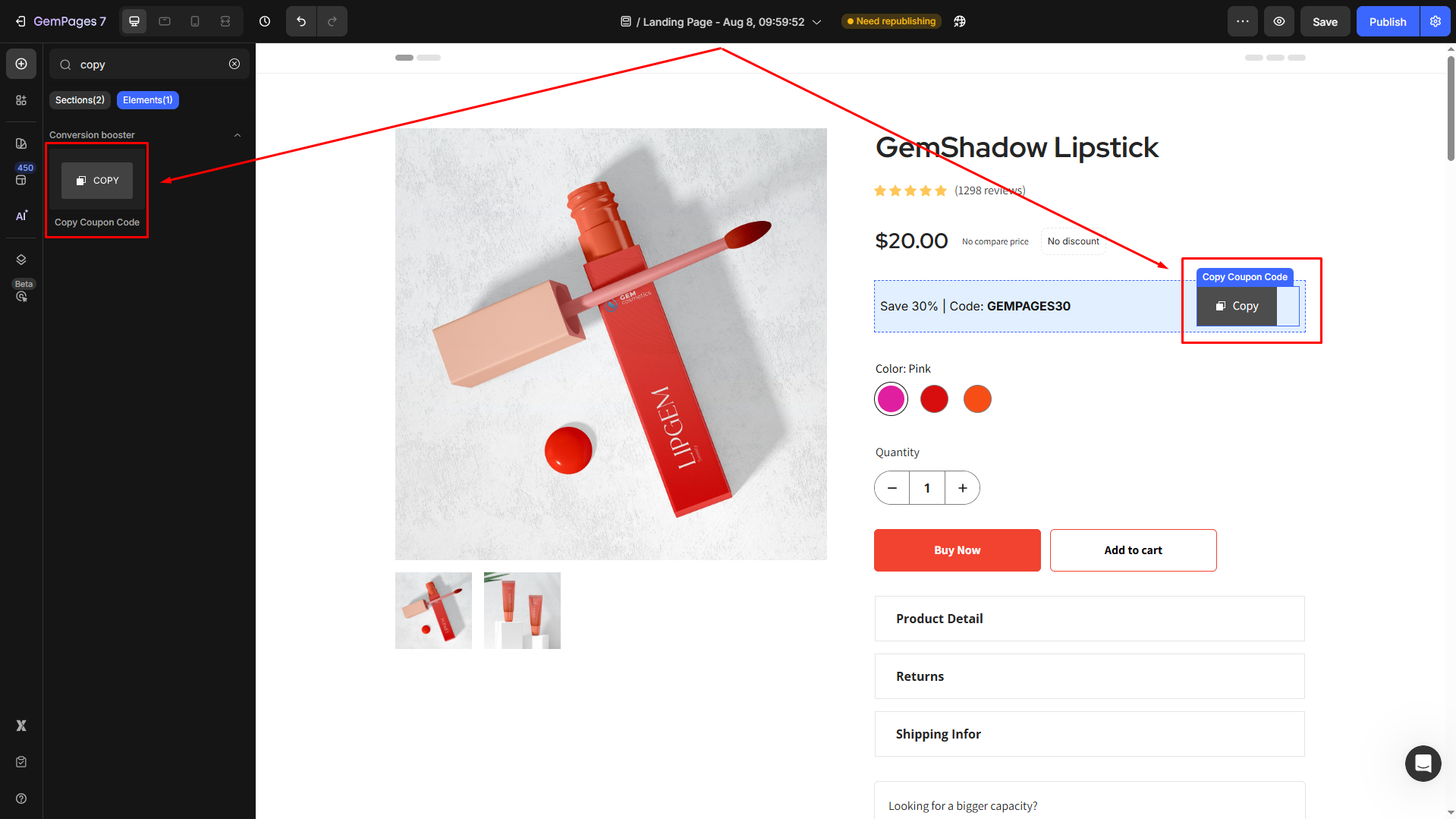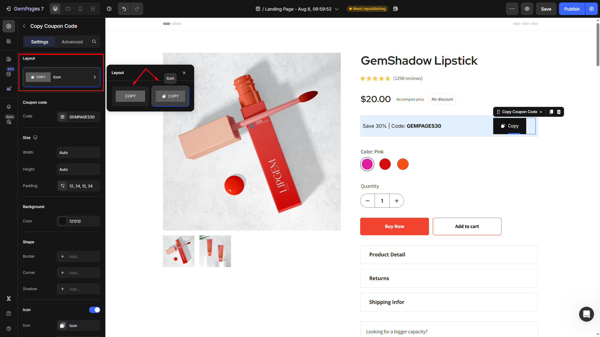 To maximize the effectiveness of the Copy Coupon Code Button in GemPages v7, it’s important to place and design it for optimal user engagement.
