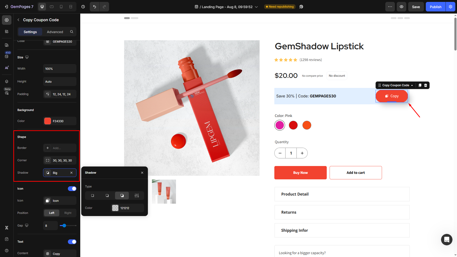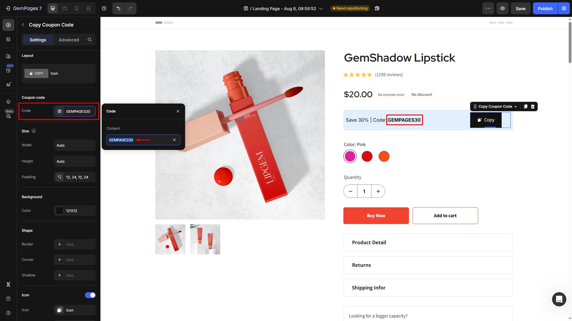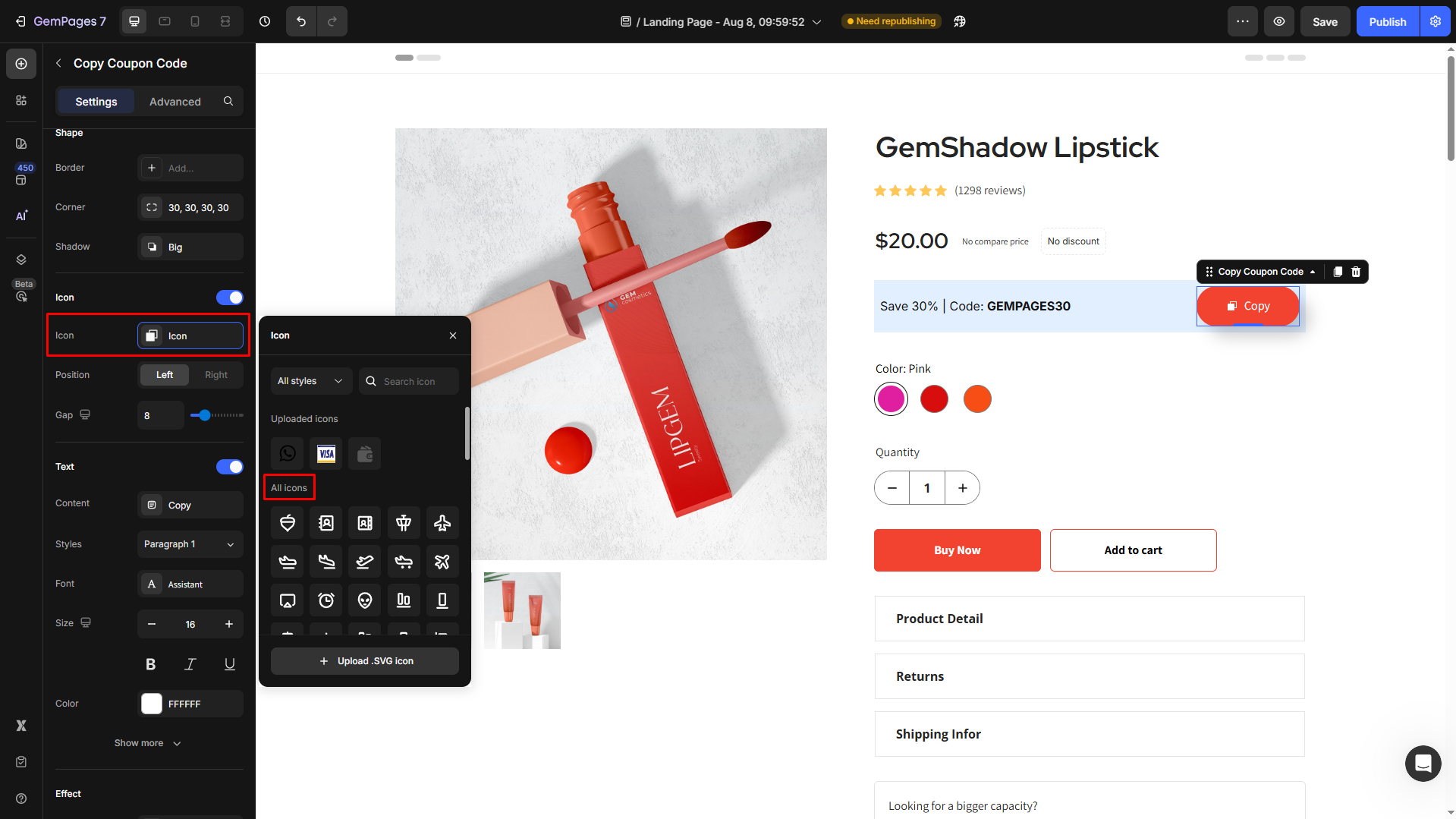To maximize the effectiveness of the Copy Coupon Code Button in GemPages v7, it’s important to place and design it for optimal user engagement.