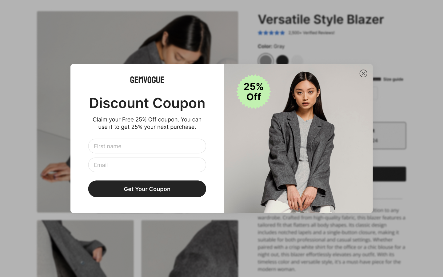 - Pop-ups: Use pop-ups to offer a coupon before customers leave or after browsing. The quick copy feature encourages them to stay and buy.