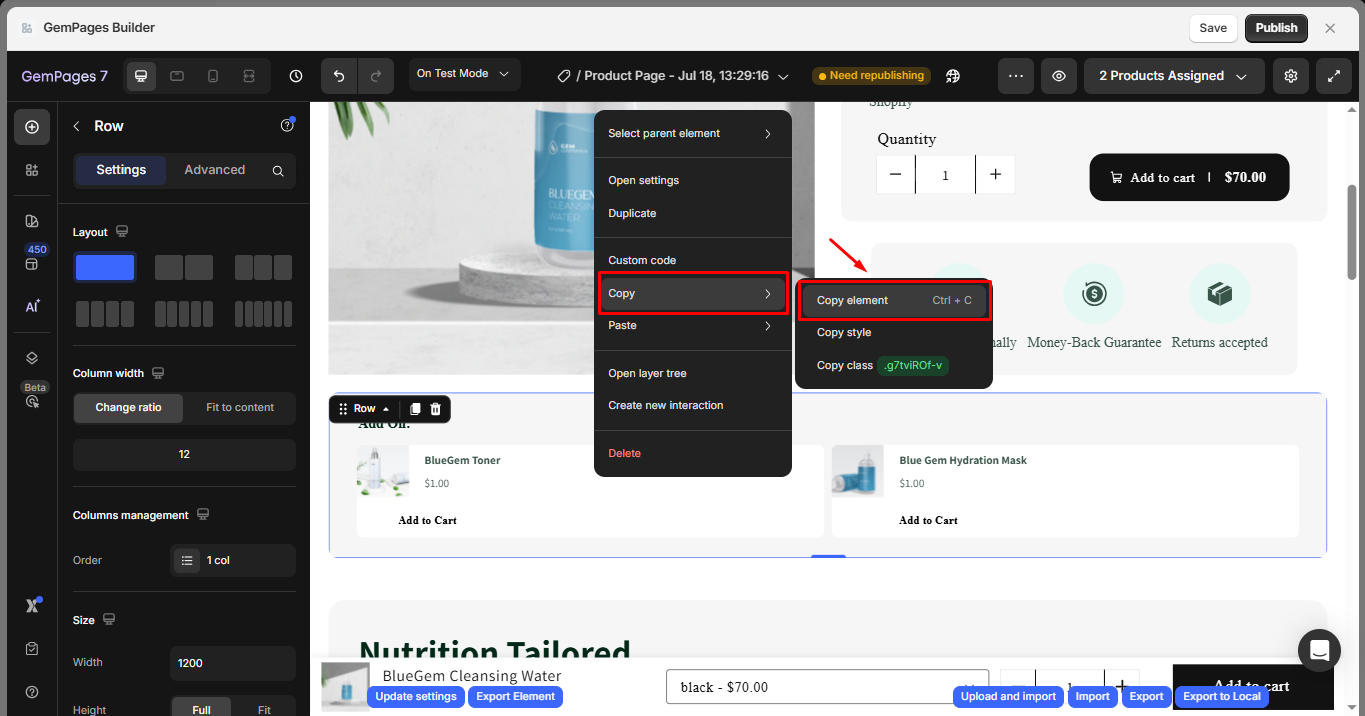 Step 1: Open the GemPages Editor and design the section you want to reuse.