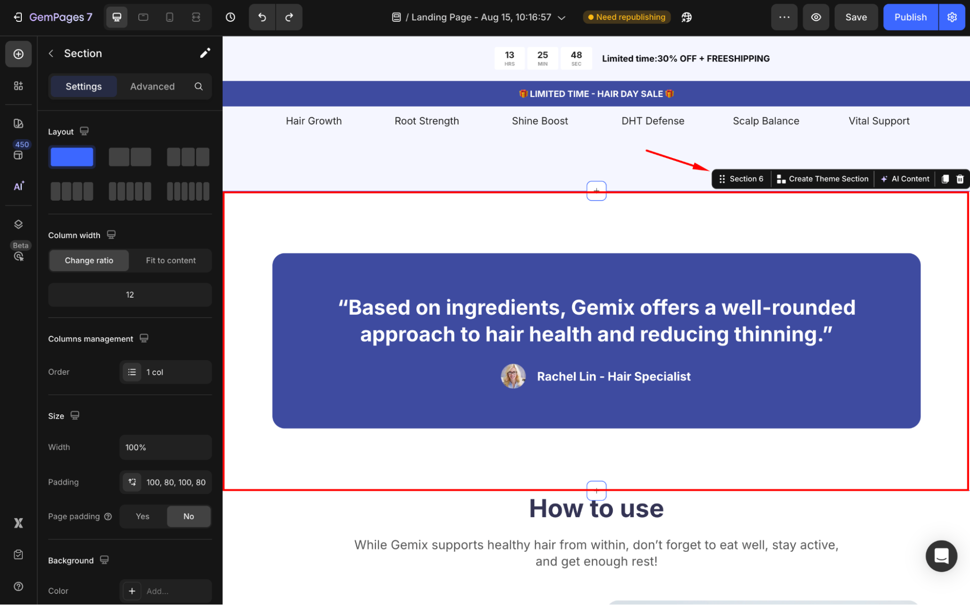 Step 1: Locate the section where you want to place the copied Text Element.