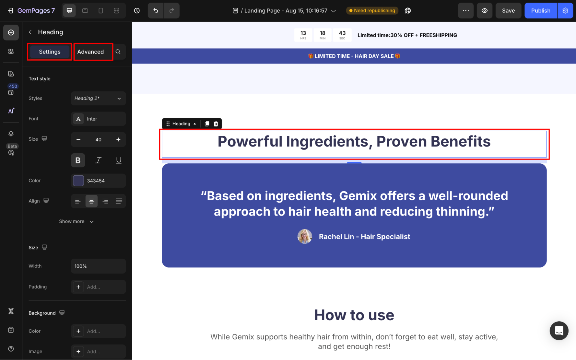 - Maintain consistency: Reuse headings, descriptions, or text styles across multiple sections of your page.