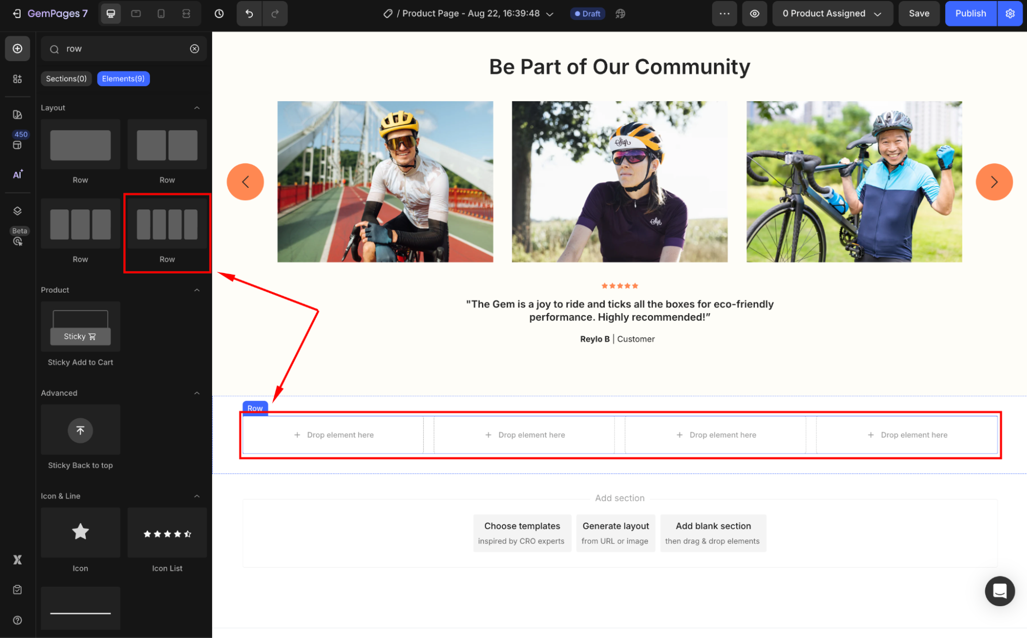 Follow these steps to create the 5-column grid layout with GemPages’ Row element.
