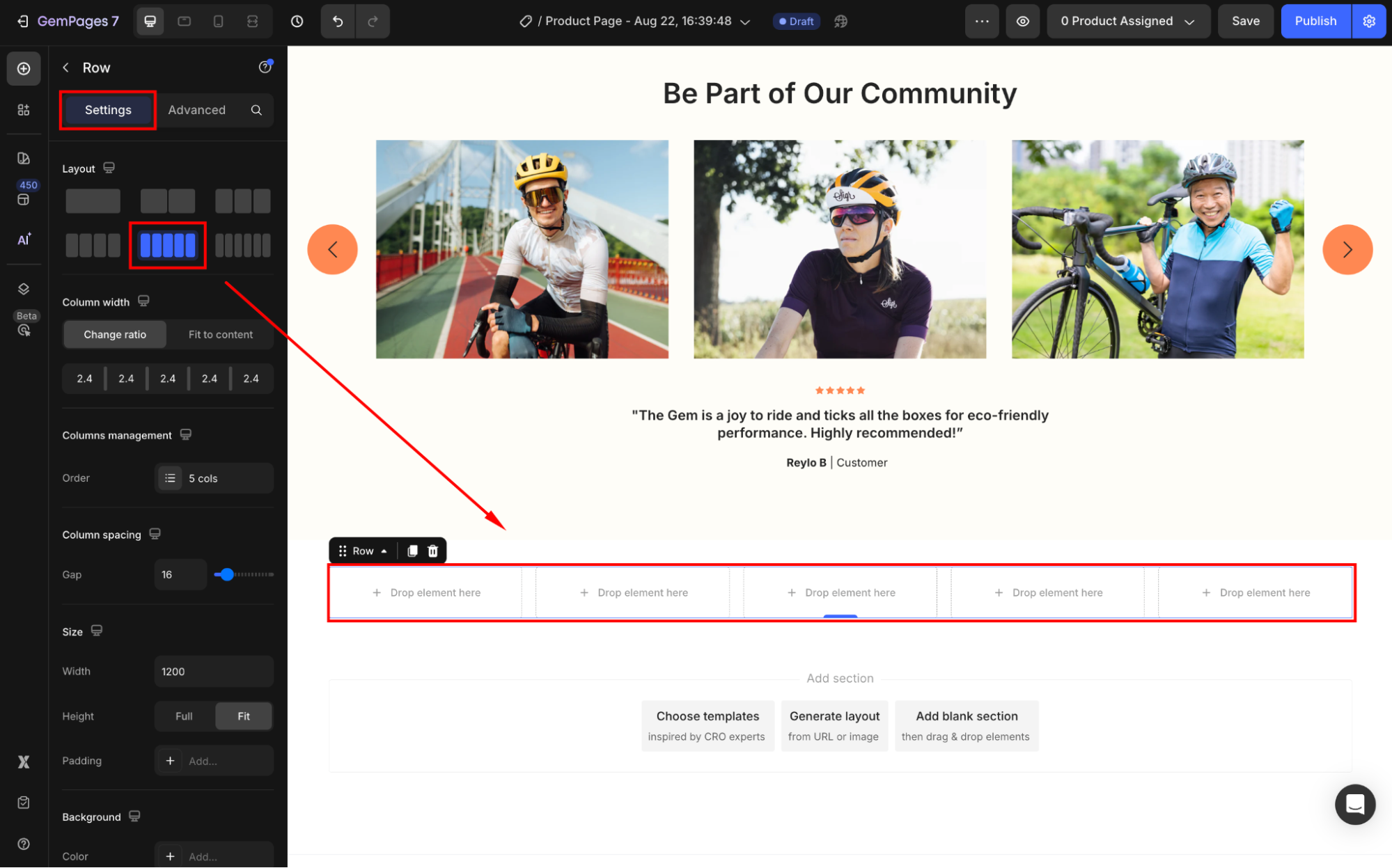 With the latest update in GemPages v7, you can now set up a 5-column grid more easily and with better customization options.