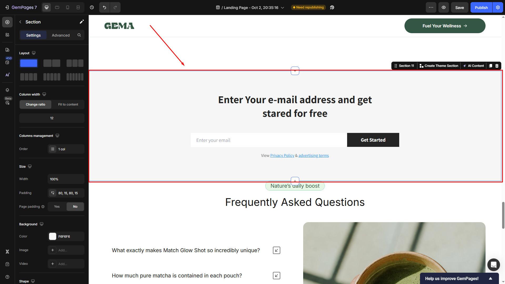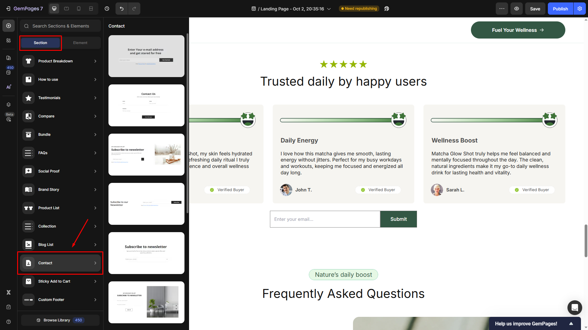 To save time and effort, you can select a pre-designed form section from the GemPages Library.