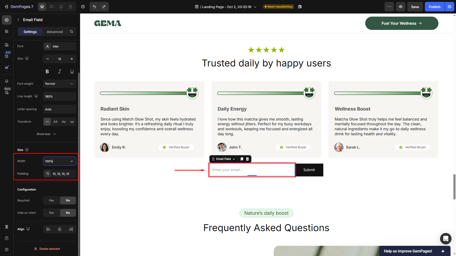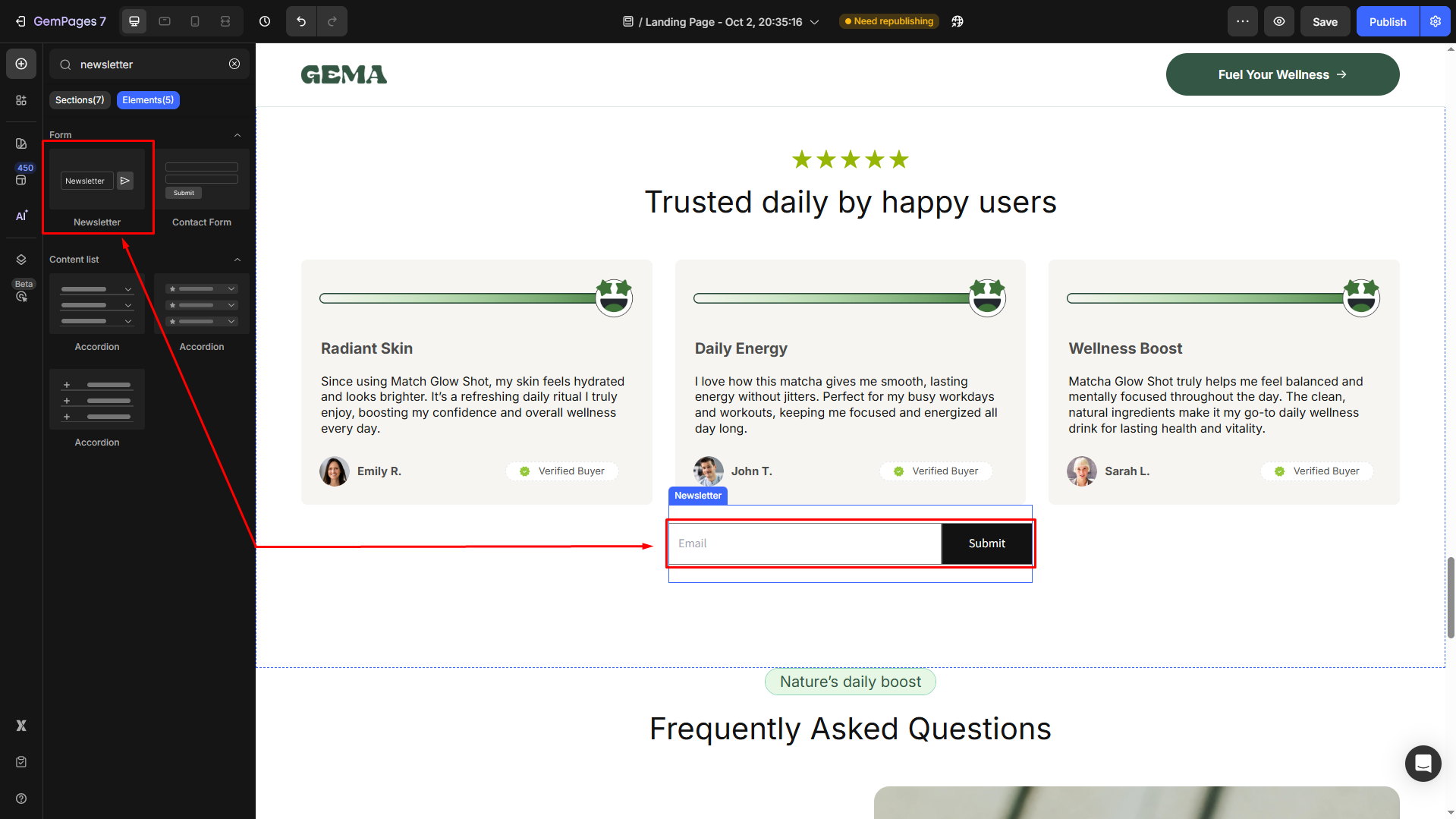 You can do this directly inside GemPages by dragging the Newsletter element onto your page. It’s fully functional without needing third-party apps.