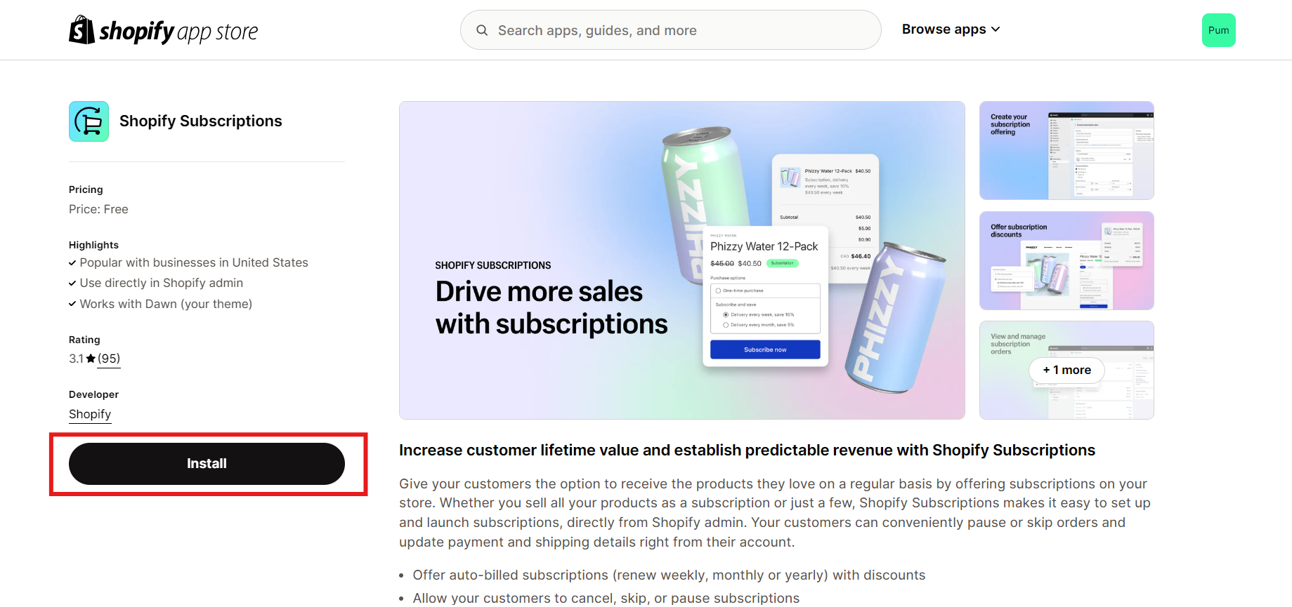 - Install an App: Choose one of the above subscription apps from the Shopify App Store.