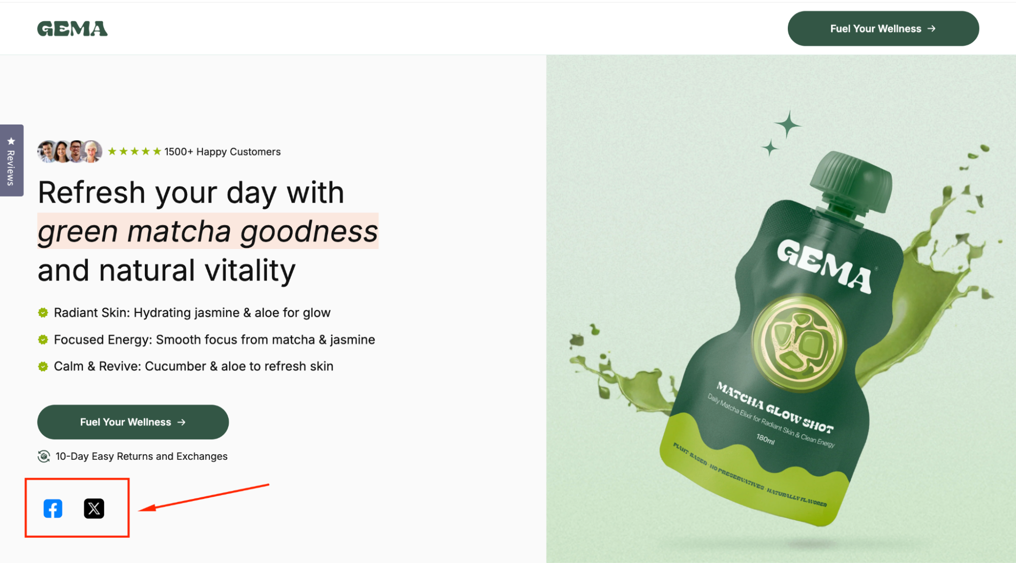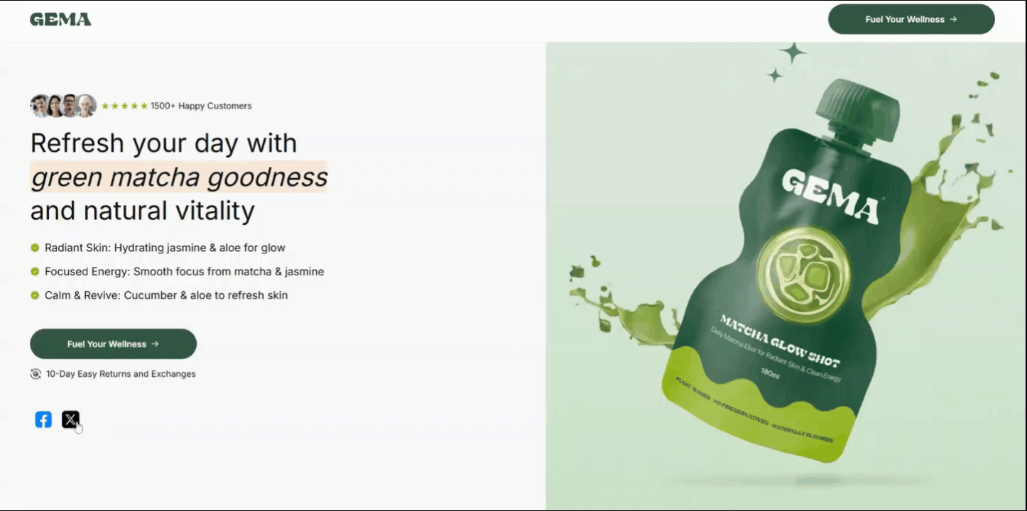 A social sharing section is a block on your page that displays clickable social media icons, usually placed near key content such as product pages, blog articles, or promotional campaigns.
