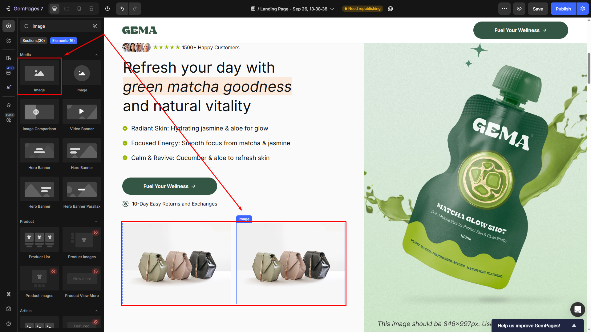 - Drag and drop an Image Element into each column.