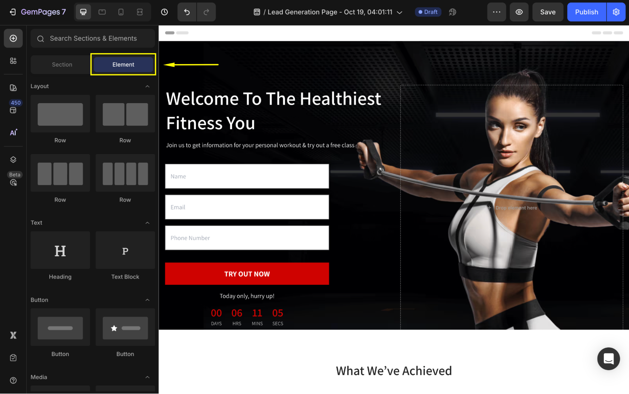 Also, you can add additional elements to make the landing page fit your branding (i.e, Image Element, Countdown Timer Element, etc).
