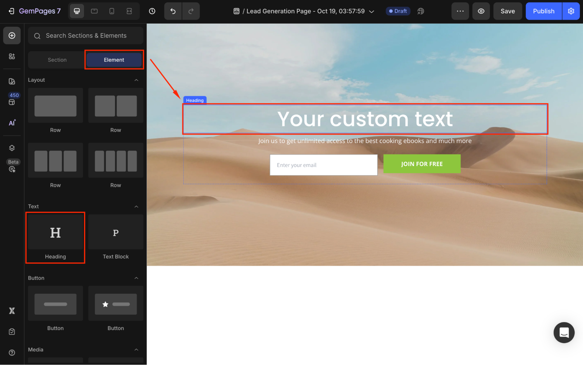 Within GemPages v7, it’s easier than ever to build your own lead-gen landing page.