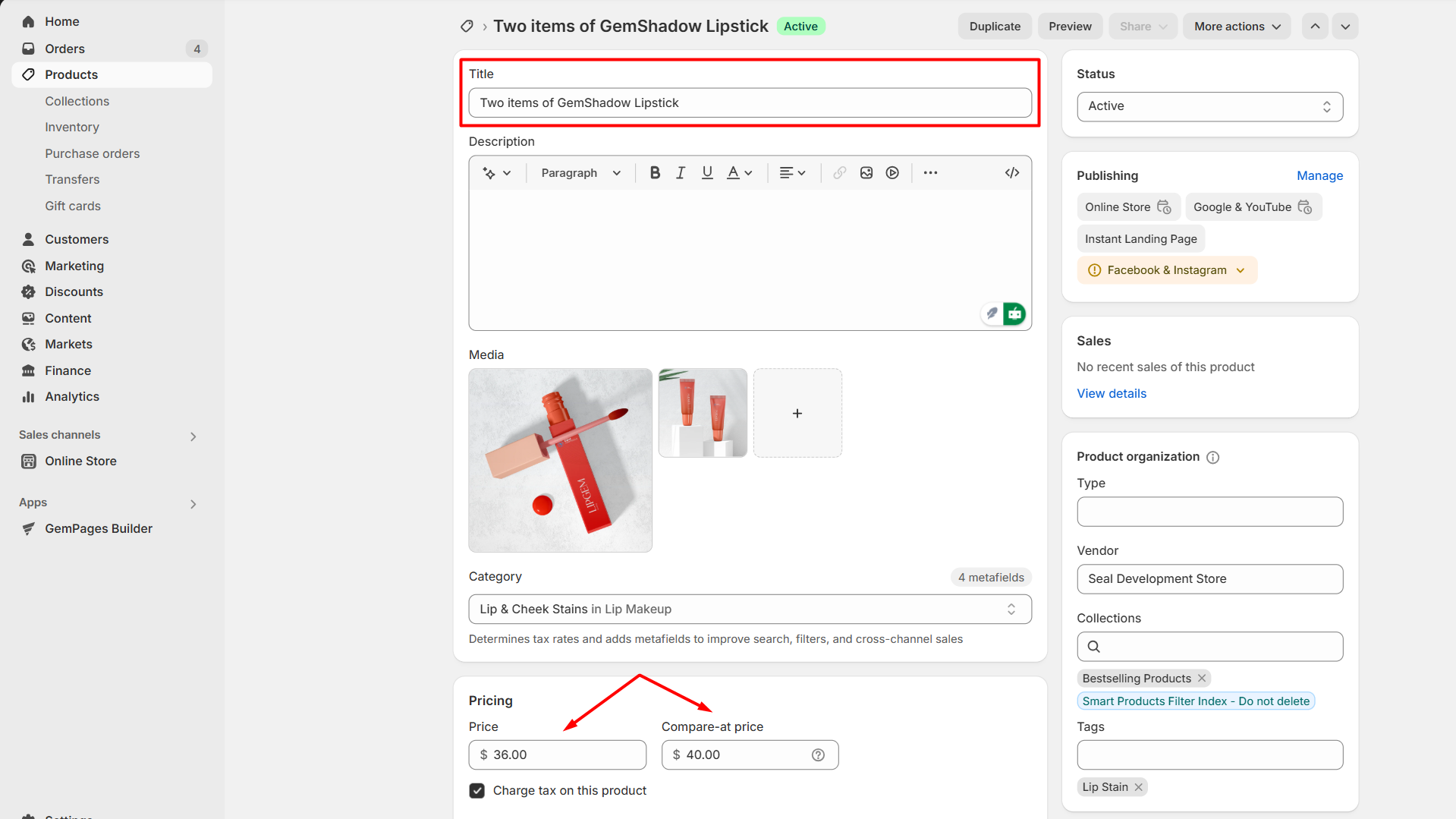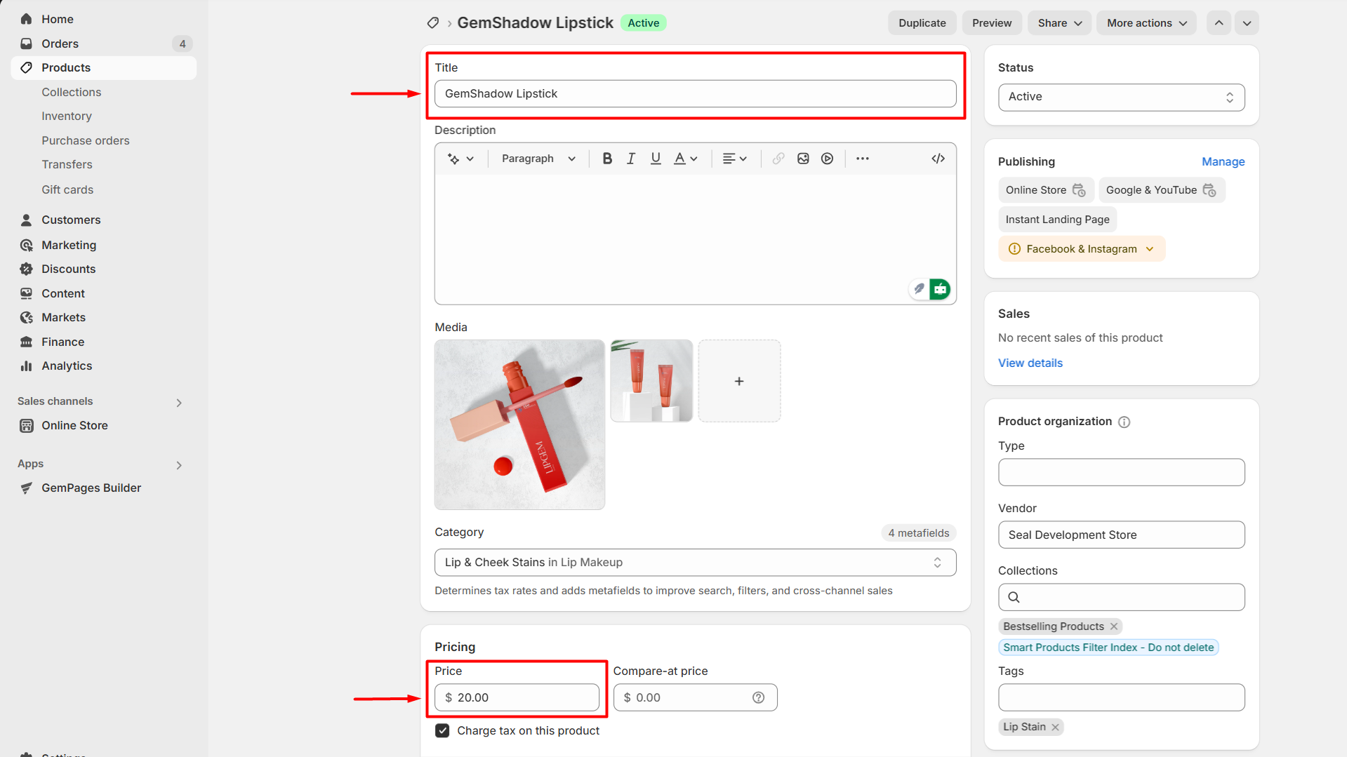 For example, we have a product named “GemShadow Lipstick” with a price of $20 per item. Customers can save 10% for buying 2 items and 20% for 3.