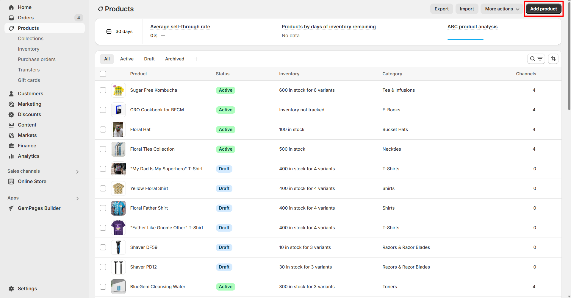 Step 2: Hit the Add product button in the top right corner.
