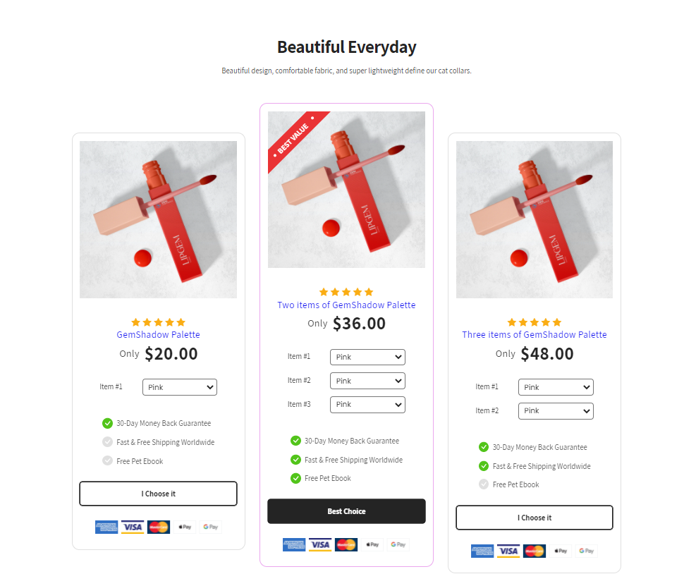 For example, instead of selling one makeup item at $20, you can offer a “Buy 2, Save 10%” deal. This not only appeals to price-sensitive shoppers but also encourages them to purchase more items in a single transaction.