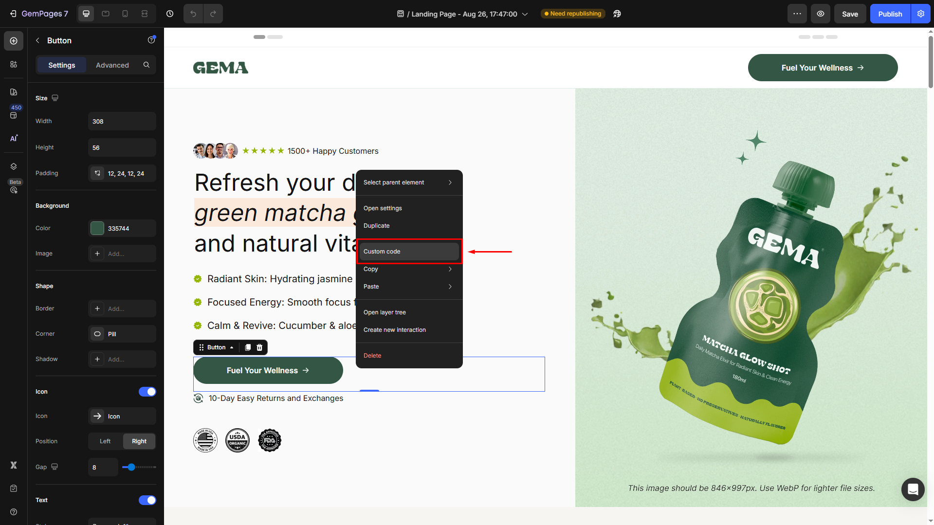GemPages can support most customized styles without requiring coding. However, for specific design requirements that need to be tailored, you can use custom code.